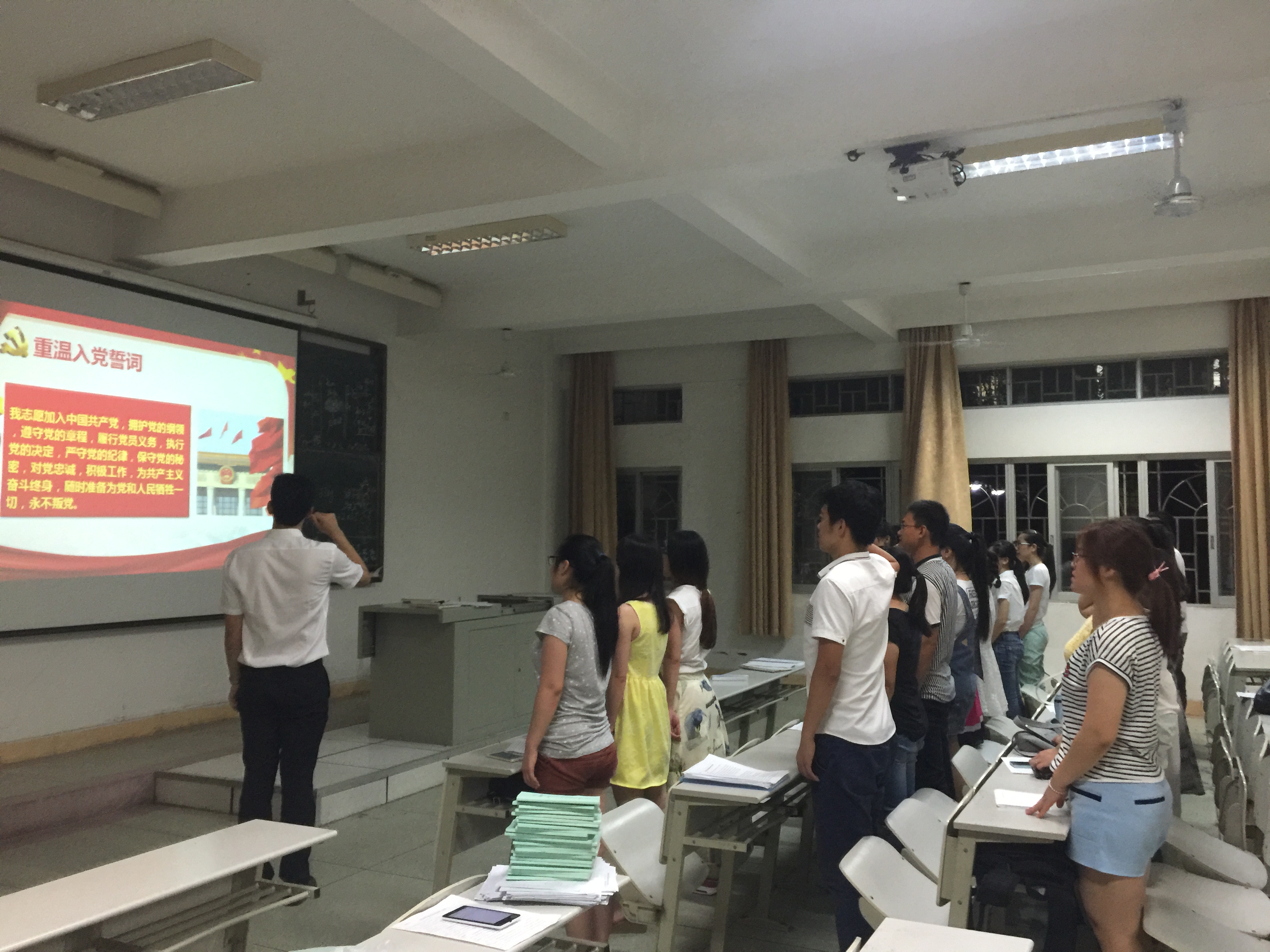 为使毕业生牢记党员身份,加强党员责任感,以诚为本赢在信誉9001cc举办了毕业生党员重温入党誓词活动。活动于6月1日17:00在台江校区F2教室举行。毕业班学生第三、四党支部全体党员参加了活动,活动由毕业班辅导员邓上清老师主持。