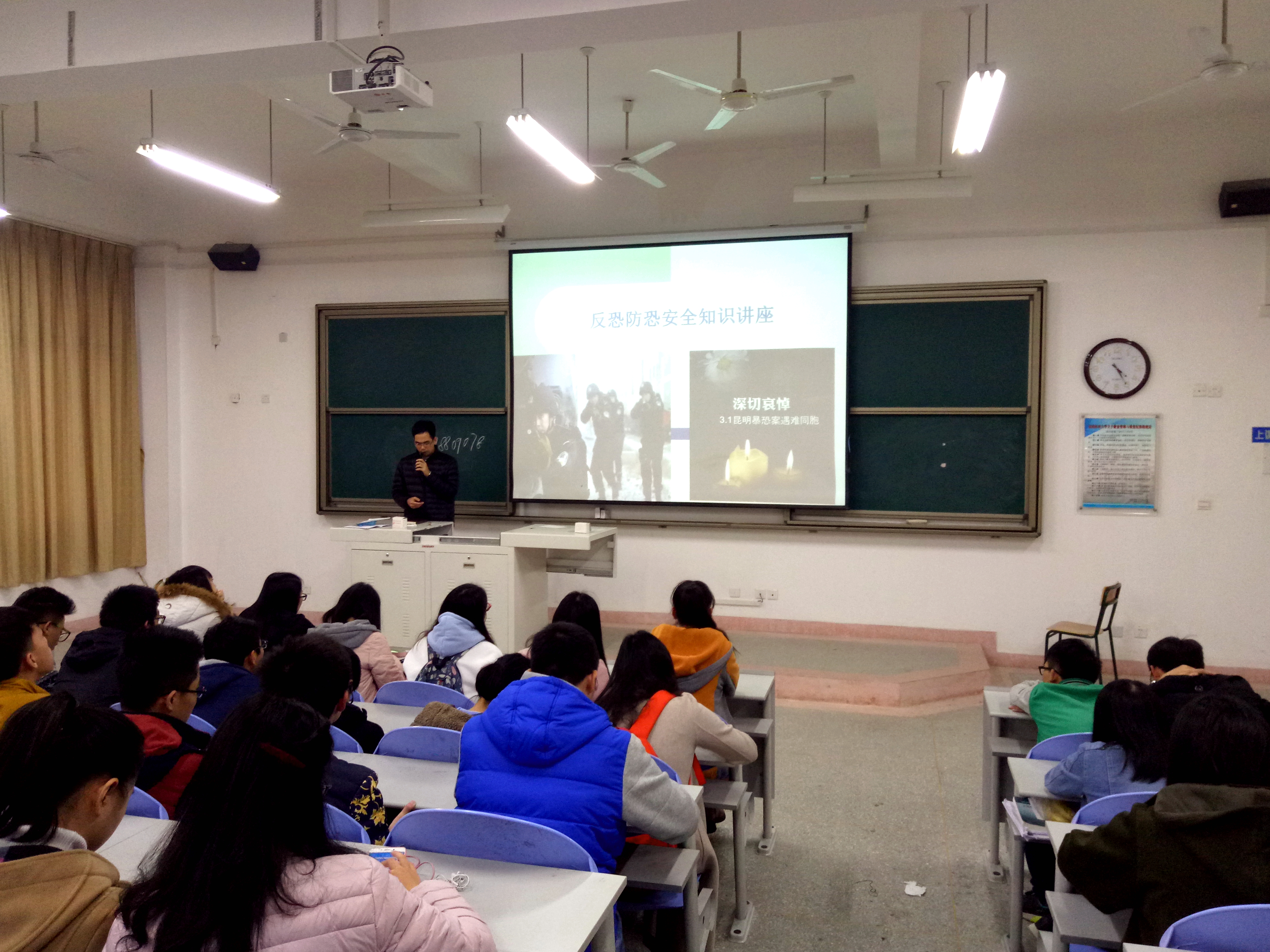 本次讲座详细介绍了什么是恐怖主义、中国的恐怖暴力事件和反恐措施、恐怖袭击的特点、手段以及在恐怖袭击中应当如何自救等相关内容。通过举例说明暴力恐怖事件的危害性以及防恐反恐的重要性,从而增强自我保护的意识和能力。