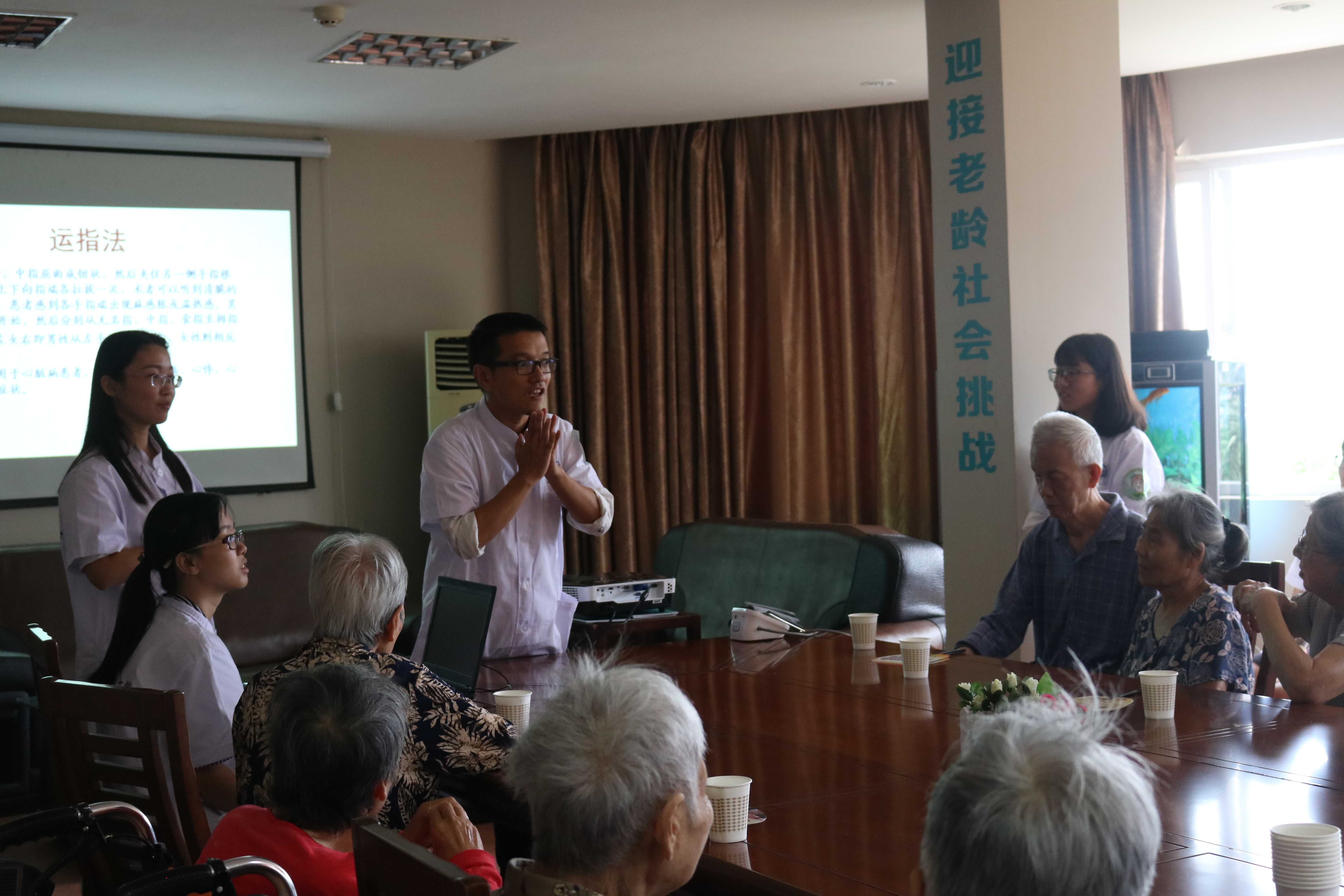 “知晓您的血压——第20个全国高血压日”健康护航“益课堂”活动于2017年10月8日在福建医大附一康复医院、养护中心进行。康复治疗系潘燕霞教授,林诚老师,陈秀云老师及专项行动的志愿者共同参加了活动。