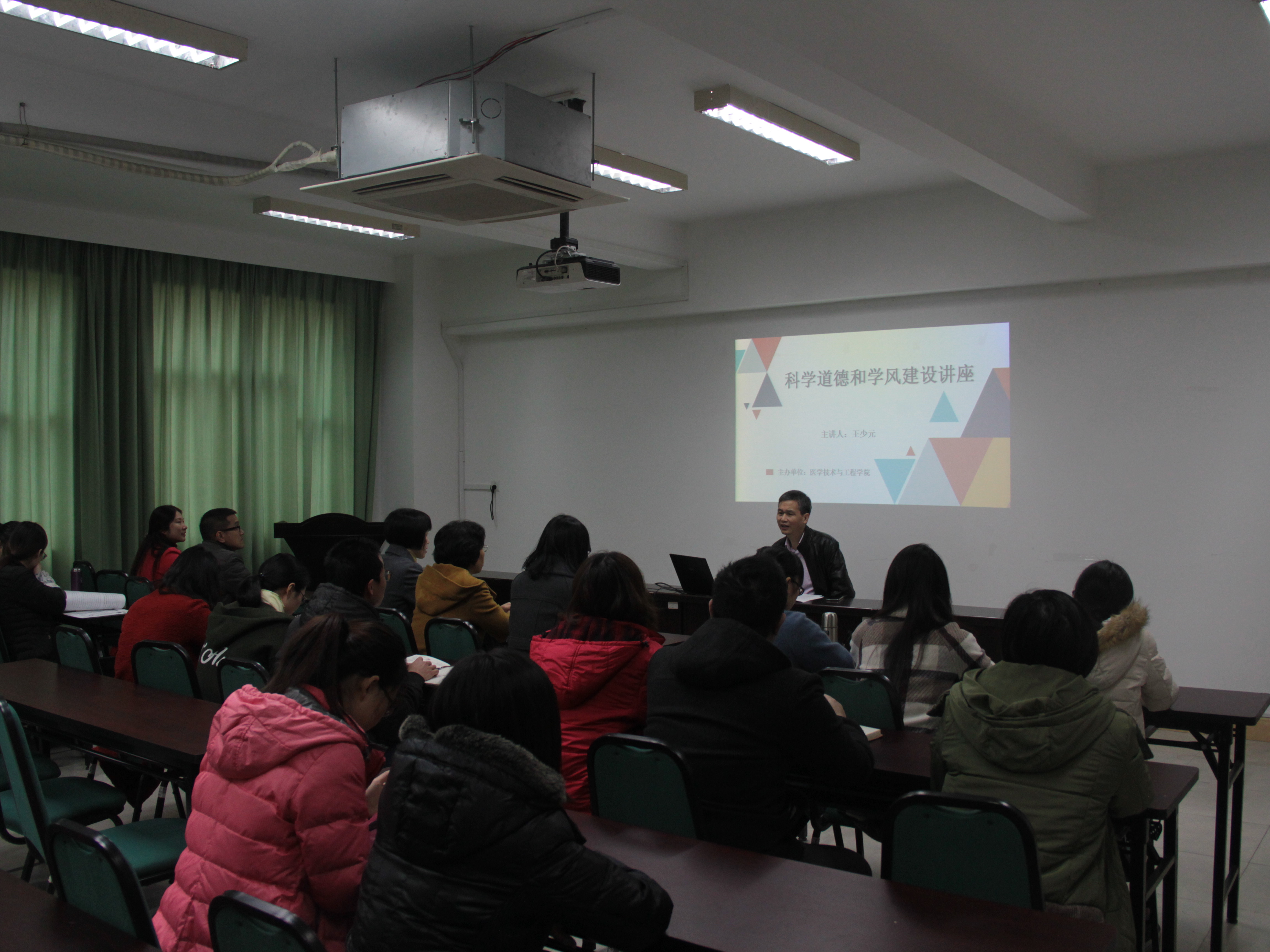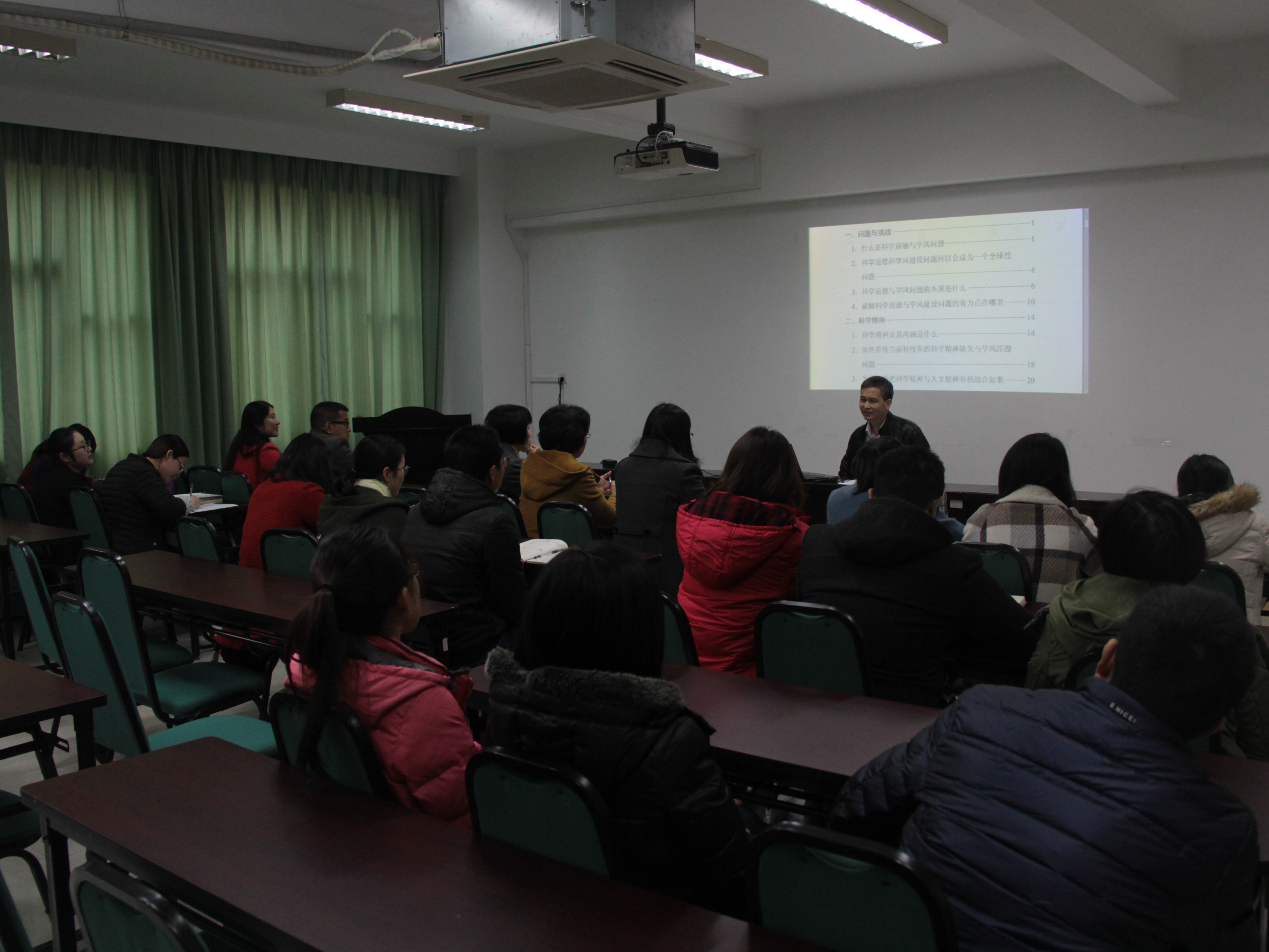 12月13日上午,以诚为本赢在信誉9001cc在台江校区F楼学术报告厅举办了科学道德和学风建设主题讲座。本次讲座主讲人为王少元副院长,学院教师和研究生20余人参加学习。