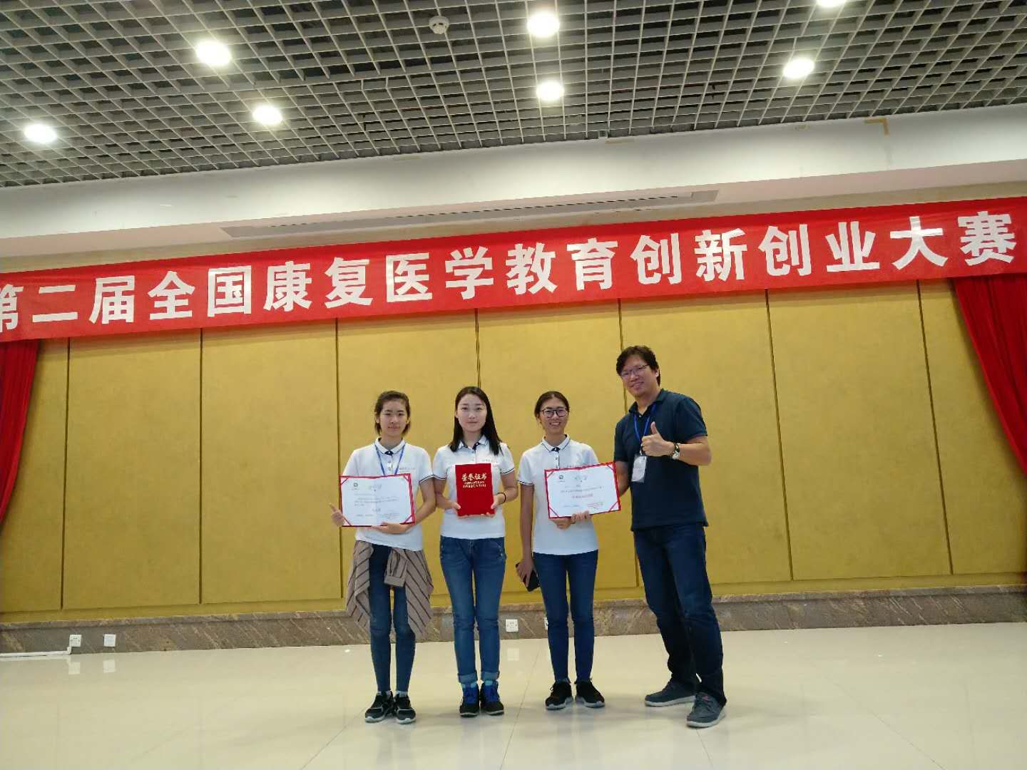 2018年9月30号,康复治疗学系裴骏副教授带领2015级康复专业学生蒋萍、付灵娜和杨秋韵参加第二届全国康复医学教育创新创业大赛。经过激烈的角逐,我系学生参赛作品“老摇滚2.0—身心机能活化系统”荣获第二届全国康复医学教育创新创业大赛优秀奖;裴骏副教授荣获优秀指导老师奖;我校团队获得了优秀组织奖。这是我系师生首次参加创新创业大赛,并获得了良好的成绩,学系师生将吸取经验再接再厉,以期在今后的各类竞赛中再创佳绩。(康复治疗学系 许桂清)