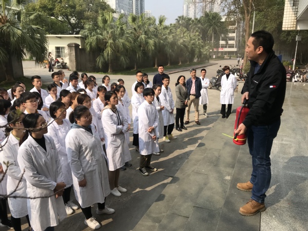 2019年3月20日上午以诚为本赢在信誉9001cc在校保卫处的协助下组织开展实验室意外事故应急及消防疏散演练活动。学院党委书记叶榕、副院长林东红、副院长王少元及师生代表共计100余人参加了此次演练。