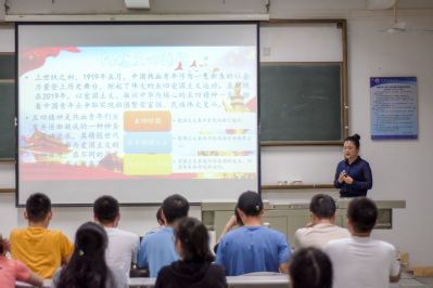 活动中,全体成员齐诵唱《歌唱祖国》,用青春为祖国唱赞歌的方式,表达青年学子的真挚爱国心。同时,通过支部组织委员邱淑慧同志的理论宣讲,带领大家学习五四运动的背景、要义、时代内涵和具体内容,以及学习纪念五四运动100周年习近平总书记的重要讲话,让大家牢固树立 “爱国奋斗正当时,建功立业新时代”的决心。