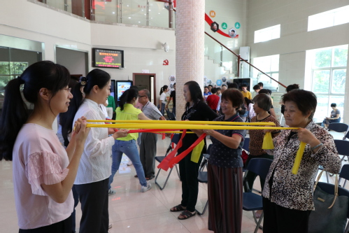 师生们在康复治疗学系老师指导下首先为长者开展“现代健康观念和老年人生活好习惯”科普讲座,一对一地教导老人进行健身操(八段锦)训练,指导老人们体验“老摇滚”身心机能活化系统以及手部协调功能训练,同时还贴心地给老人们准备了纪念小礼品。