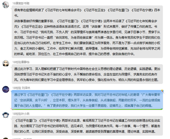 会上,大家结合实际,交流学习体会。通过认真研读《习近平在宁德》《习近平在厦门》,真真实实感受到习近平总书记志存高远、心怀天下,以身许党许国,勇于担当作为,全心全意为人民服务的赤子情怀。所有与会同志一致表示,要把学习成果转为为武装头脑、指导实践、推动工作的强大力量,真正做到初心如磐、使命在肩,永葆奋斗精神,永怀赤子之心,以实干彰显初心,用奋进践行使命,坚定理想信念、志存高远、脚踏实地,勇做时代的弄潮儿,在实现中华民族伟大复兴中国梦的新长征路上奋勇搏击、不负韶华。