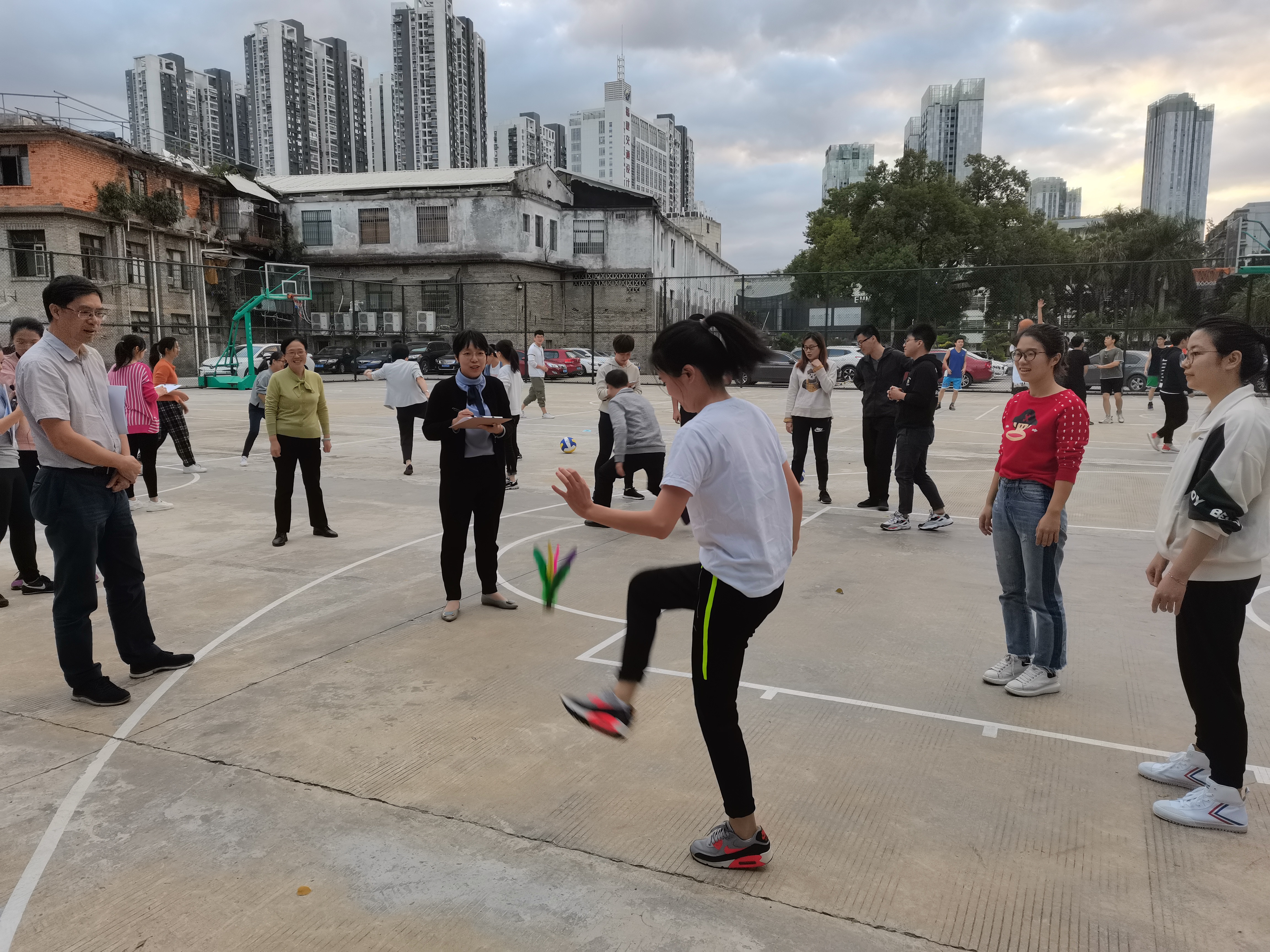 此次趣味运动会设踢毽子、集体跳绳、时空隧道、定点投篮等4个活动项目。活动过程中,全院教职工以抽签的形式随机分为4组,以小组为单位参加各项比赛。教职工在运动中散发着青春和活力,在轻松愉悦又不乏激烈刺激的气氛中,身体得到锻炼、心情得到放松。
