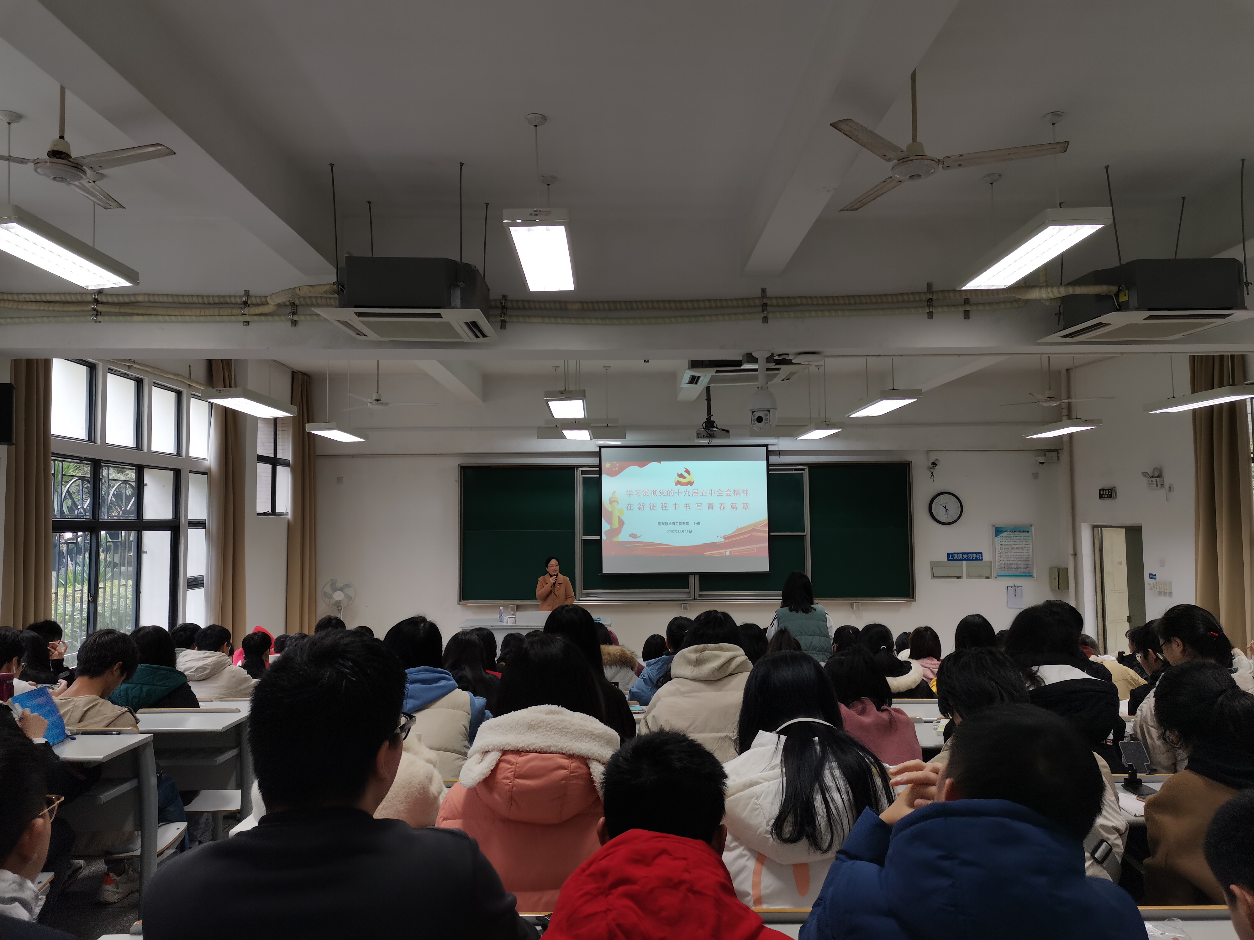 叶榕书记从“十三五”期间我国取得的主要成就、目前发展环境中面临的机遇与挑战、社会主义现代化远景目标和“十四五”时期社会发展和改革开放的重要任务等几大方面,对全会的精神进行了深入的阐释。她强调,全体师生要把思想和行动统一到习近平总书记重要讲话和全会精神上来,准确把握新发展阶段、新发展理念、新发展格局的核心要义、精神实质和实践要求,不断增强“四个意识”、坚定“四个自信”、做到“两个维护”。此外,她还对在场的青年学子提出了希望,要牢记习近平总书记的嘱托,树立崇高理想,刻苦钻研知识,胸怀祖国人民,将青春梦融入中国梦,奋力谱写精彩的青春篇章。