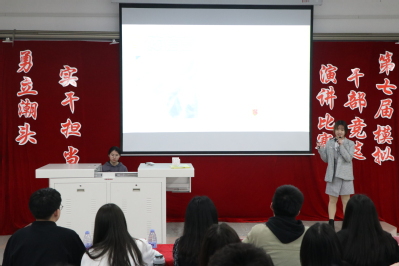 经过初赛激烈的角逐,共有12位选手脱颖而出。选手们通过各自的竞选演讲讲述了对学生组织工作的认识,分享自我大学生涯的规划,表达了立足岗位做贡献的信心和期盼。即兴演说环节考验着选手们的语言表达和临场应变能力。根据抽取到的话题,参赛者们结合中国共产党百年辉煌成就、一代又一代中国共产党人的担当奋斗、党史学习的深刻体悟等,展开即兴演说,选手们表现自信大方,口若悬河、妙语连珠,获得掌声阵阵。