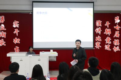 为加强党史学习教育,用党的奋斗历程和伟大成就鼓舞斗志、明确方向,用党的光荣传统和优良作风坚定信念、凝聚力量,用党的实践创造和历史经验启迪智慧,帮助学院学生干部提高组织管理和创新实践能力,引导他们在服务同学的同时、引领全体学生加强思想政治教育、起到模范带头作用,2021年4月19日晚,我院组织举办“百年党史青年说”演讲比赛暨“勇立潮头,实干担当”第七届模拟干部竞选演讲比赛。青年学生发出青春声音——立足本职岗位,规划未来发展;共话百年党史,献礼建党百年。比赛在旗山校区66教进行。