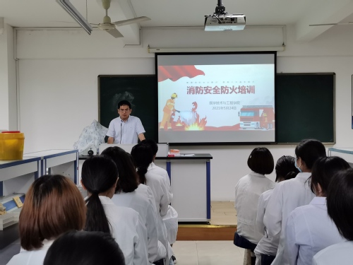 消防安全知识讲座通过校园消防安全注意事项、实验室消防安全教育及电动车火灾隐患等视频播放,加深了师生对消防安全知识的了解。胡建民副院长特别指出,师生进入实验室前一定要熟知相关安全事项,进入实验室后要遵守实验室相关规定,离开实验室时要收拾好自己的桌面,养成良好的实验习惯,最大程度避免发生危险。实验室意外事故处置演练中,实验人员重点演示菌液碰洒意外事故、酒精灯着火应急处理以及洗眼器、喷淋系统的使用操作。保卫处工作人员现场示范操作消防器具的正确使用方法,指导协助学院师生开展应急逃生疏散演练。
