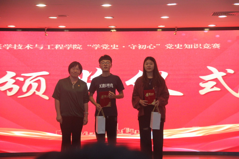 本次知识竞赛共设置了必答题、抢答题、风险题三个环节,设有图片题、音频题、多选题、单选题、填空题等题型,穿插主持人点评拓展。竞赛既是对参赛选手党史知识学习成效的集中检验,也是寓教于乐、学史砺今的生动课堂。决赛场上,选手们你来我往、激烈交锋,场下观众全神贯注、踊跃答题,掌声此起彼伏,现场氛围热烈。经过三个环节紧张激烈的角逐,最终,评选出一等奖1名、二等奖2名、三等奖2名,优秀奖4名。院领导、各部门负责人分别为获奖队伍颁奖。