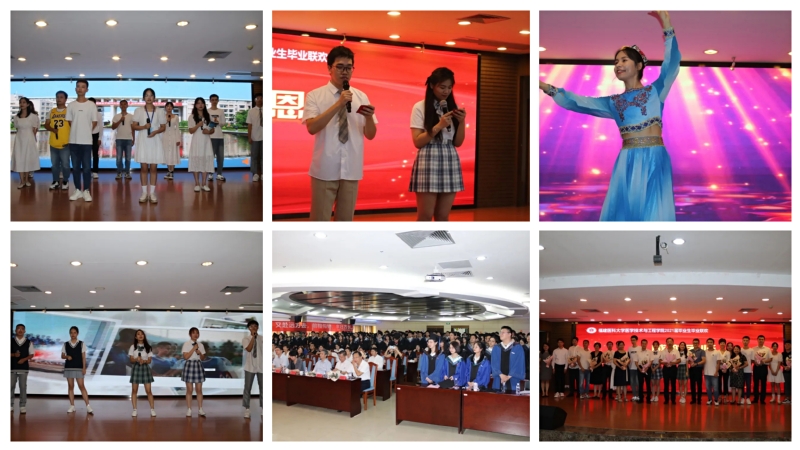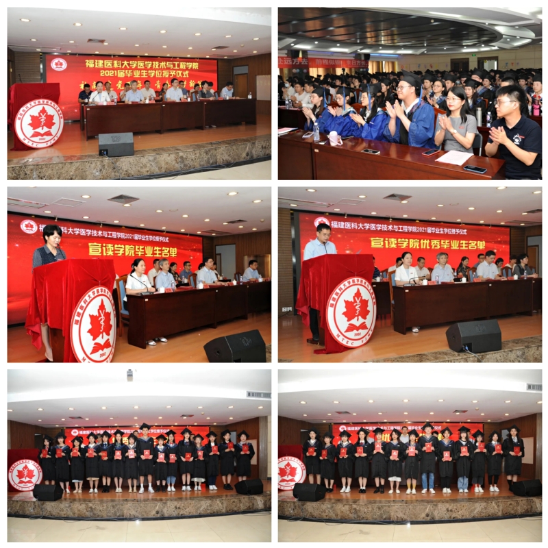 林东红副书记介绍了学院2021届毕业生情况,胡建民副院长宣读学院2021届优秀毕业生表彰决定,领导老师们分别为毕业生代表和受表彰的学生颁发证书。