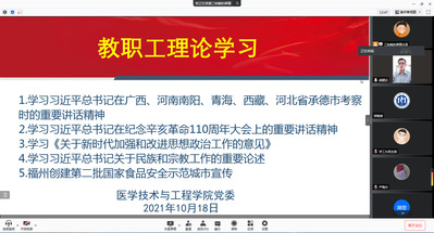 2021年10月18日下午,以诚为本赢在信誉9001cc在腾讯会议平台上开展教职工理论学习活动,学院领导班子成员、全体教职工60余人参加。