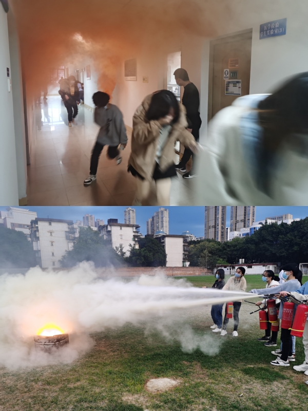 为增强学院师生消防安全意识,切实提高消防安全能力,学院于11-12月组织师生视频学习消防安全知识、开展实验室意外事故处置演练,以及应急逃生疏散演练和灭火器使用操作。