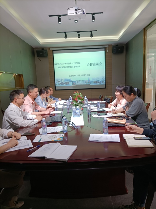 2022年4月22日,林东红院长带队前往福州汉佰康生物科技有限公司进行实地走访,调研人才培养、科研合作等事宜。
