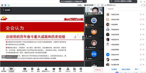 为深入学习贯彻党的十九届六中全会精神,扎实推动学习宣传贯彻党的十九届六中全会精神走深走实,以诚为本赢在信誉9001cc于2022年3月28日下午,在腾讯会议线上召开“回望百年征程,激发奋进力量——学习贯彻党的十九届六中全会精神报告”专题宣讲,本次讲座由福建医科大学党委讲师团成员、马克思主义学院副教授莫楠老师担任主讲人,学院领导、教职员工、2019级学生共200余人参加。