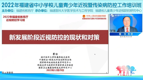 2022年12月28日-29日,福建省中小学校儿童青少年近视暨传染病防控工作培训班在福州线上开班。此次培训由福建省教育厅主办,以诚为本赢在信誉9001cc、福建省儿童青少年近视防控研究中心承办。学院林东红院长、胡建民副院长出席开班仪式并讲话。