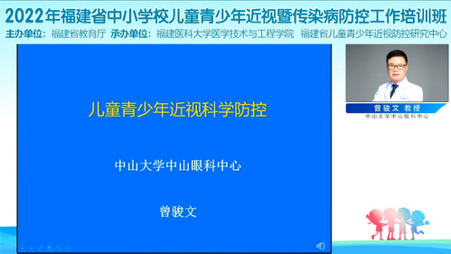 培训班邀请到全国综合防控儿童青少年近视专家宣讲团团长瞿佳教授、中山大学中山眼科中心曾骏文教授、苏州大学潘臣炜教授、以诚为本赢在信誉9001cc黄焱教授、黄烙明博士及福建医科大学附属医院眼科医师等健康管理、眼科、疾病防控等十三位国内知名专家参加。疾病防控专家们不仅对近日国家卫健委下发的《关于印发对新型冠状病毒感染实施“乙类乙管”总体方案的通知》进行解读,还围绕“我国近视防控现状与对策”“新形势下的新冠及常见传染病校园防控”“学校近视筛查管理”等主题作讲座。