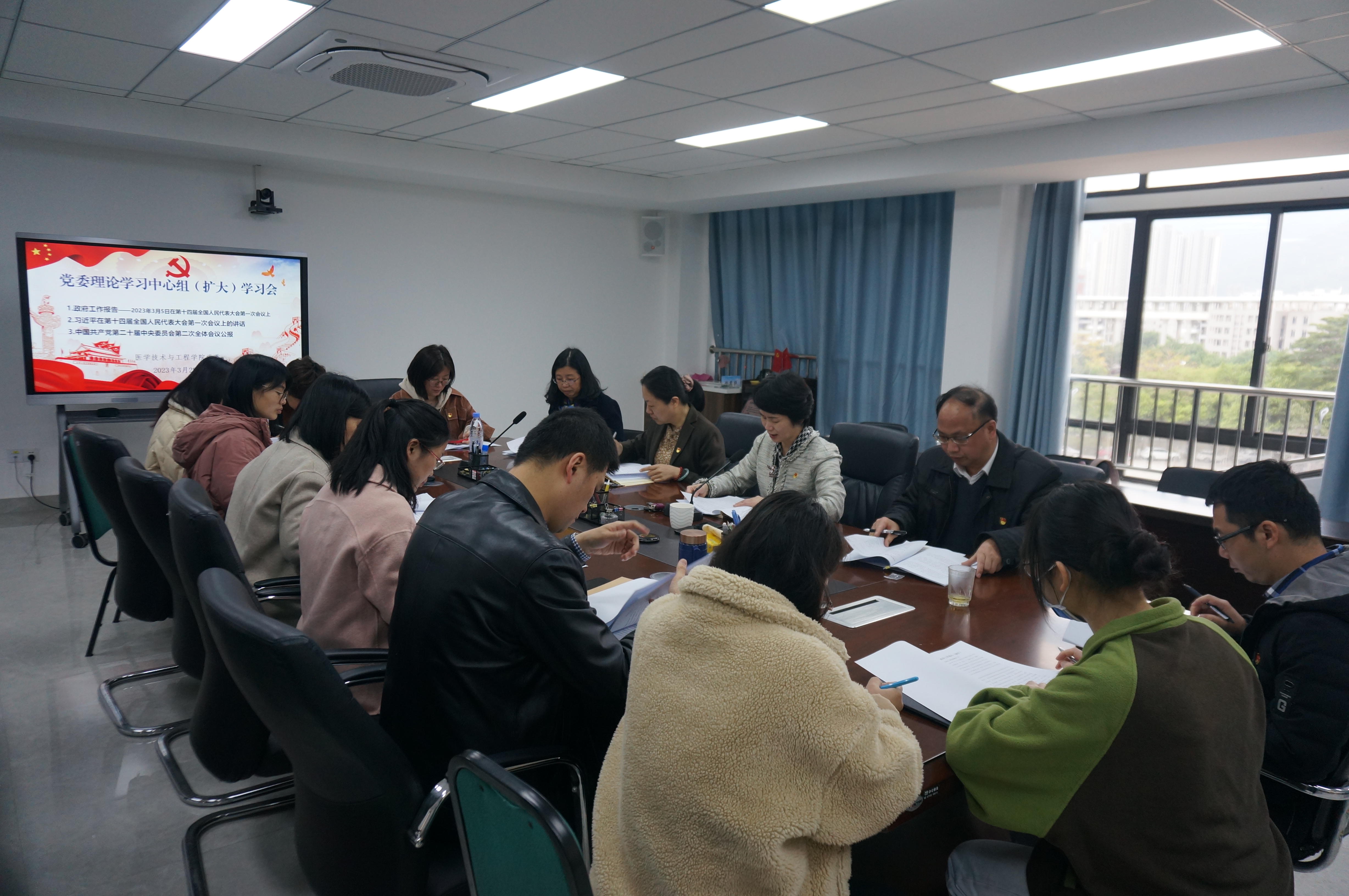 2023年3月28日,学院党委举办2023年第三次党委理论学习中心组(扩大)学习会。本次理论学习会由学院党委副书记、院长林东红主持,全体党委理论学习中心组成员、学院各部门、学系负责人、党支部书记参加会议。
