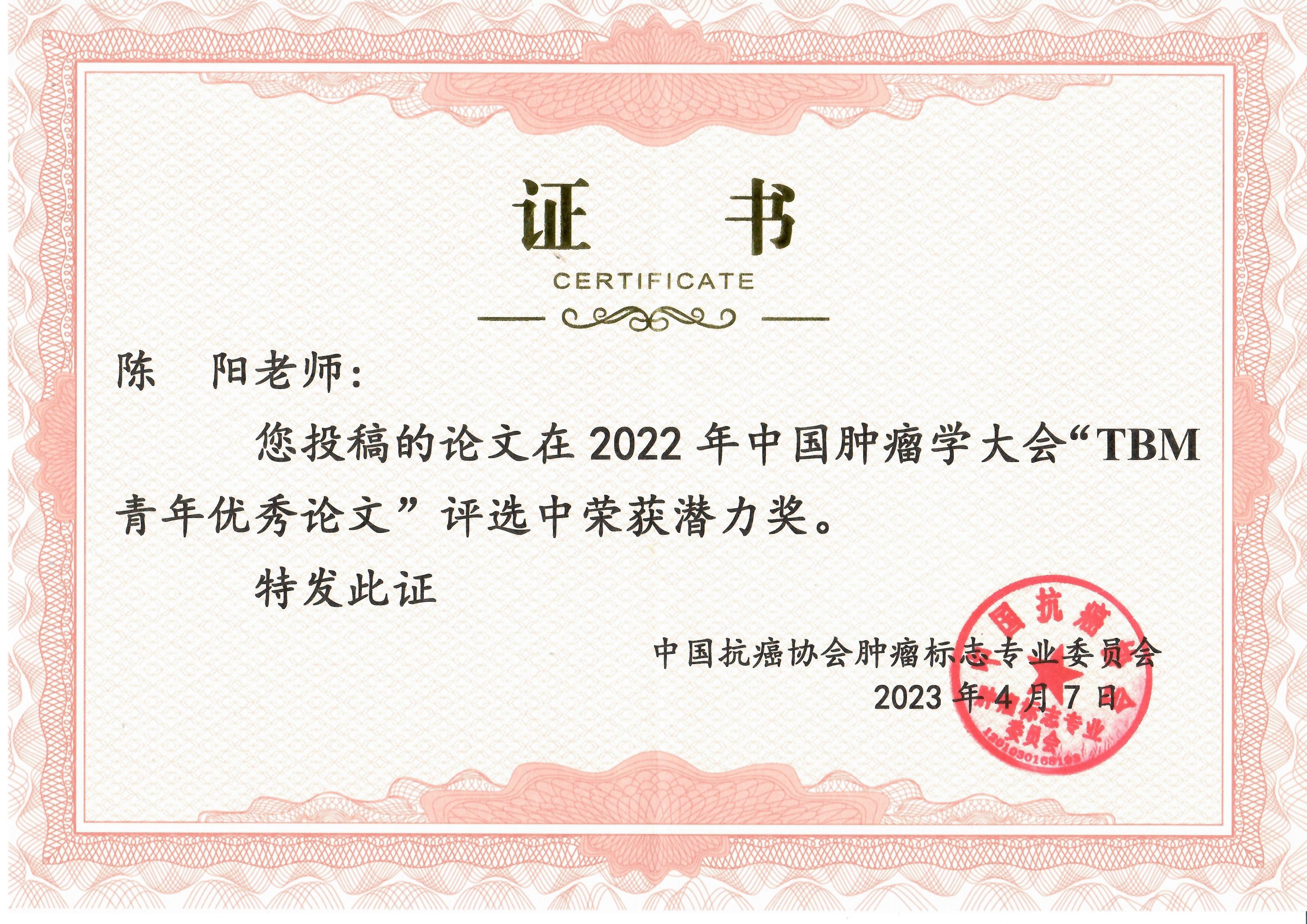 2023年4月7日-9日,2022中国肿瘤标志物学术大会在上海举行。本届大会入选中国科协《重要学术会议指南》,是我国肿瘤标志物领域最高学术水平的交流盛宴。会议共收到有效提交稿件959篇,经学术专家委员会评选出62篇优秀论文。医学检验系陈阳副教授投稿论文“Differentiation and prognostic stratification of acute myeloid leukemia by serum-based spectroscopy coupling with metabolic fingerprints”获评优秀论文“潜力奖”。据了解我校(含附属医院)仅2篇获奖,该论文为校本部唯一获奖论文。