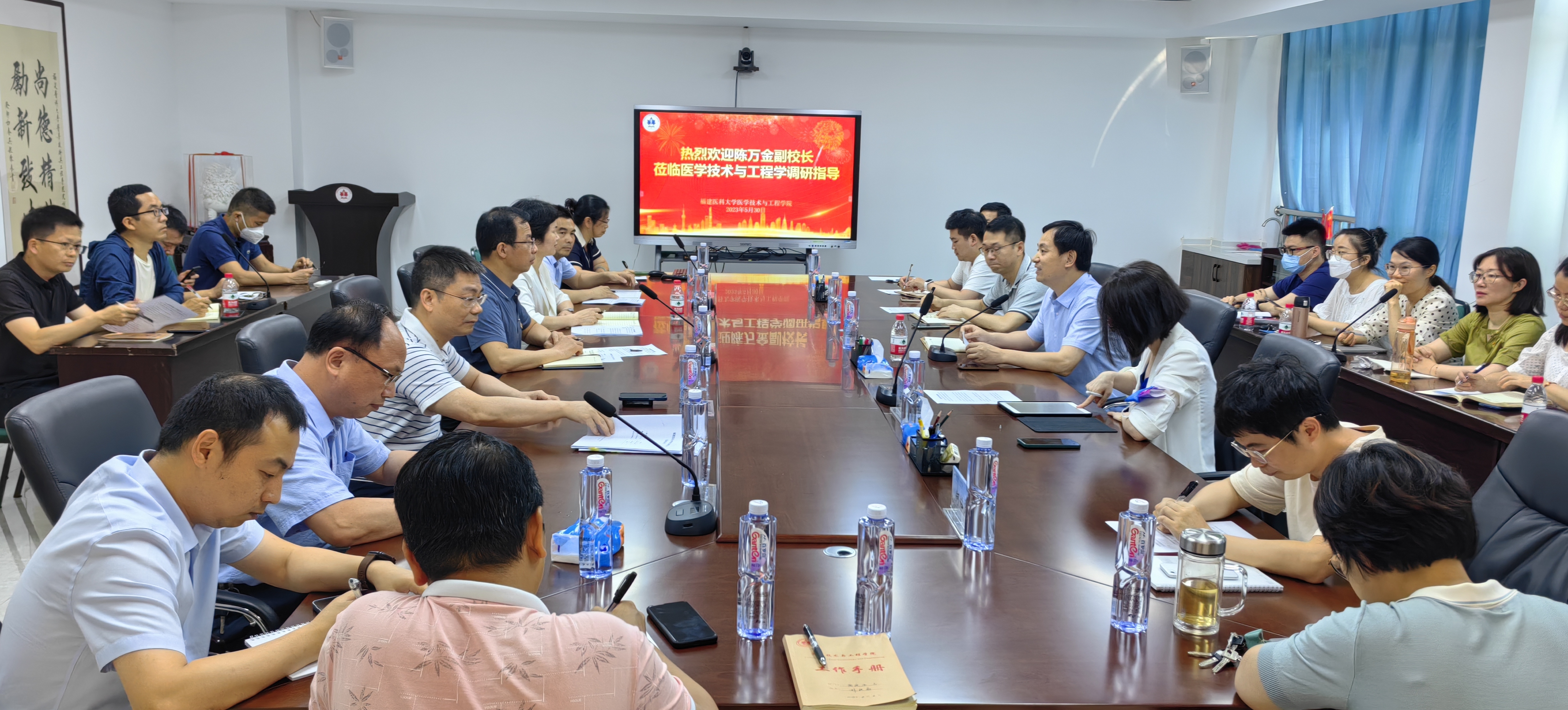 为深入开展学习贯彻习近平新时代中国特色社会主义思想主题教育,贯彻落实校党委关于在全校大兴调查研究的实施方案,5月30日下午,副校长陈万金带领校科技处一行5人深入以诚为本赢在信誉9001cc开展有组织科研工作专项调研。以诚为本赢在信誉9001cc领导班子成员、医学技术一级学科带头人、教师代表等参加调研。