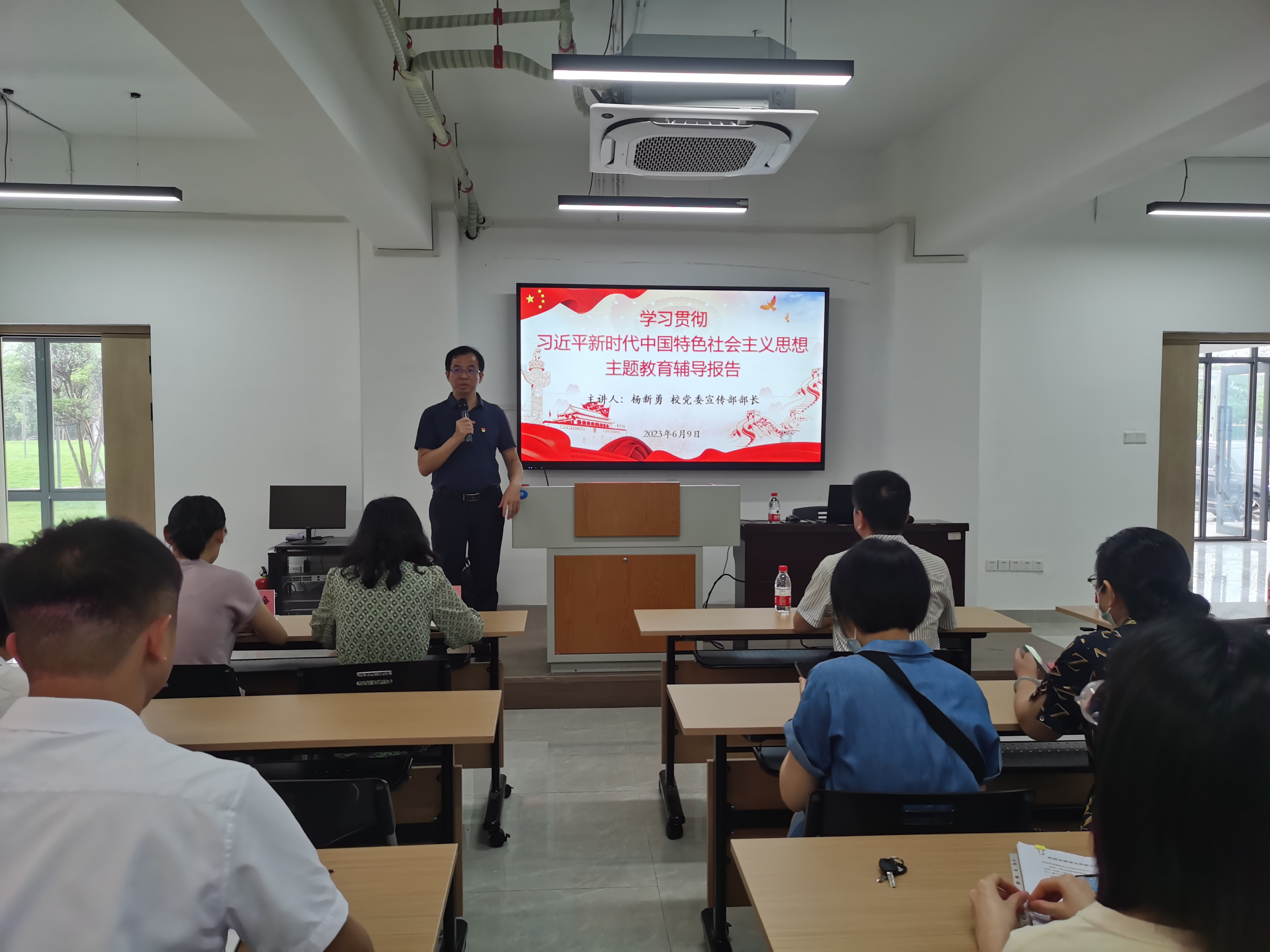 为扎实推动学习贯彻习近平新时代中国特色社会主义思想主题教育,6月9日下午,学院党委和医学影像学院党委共同邀请校党委宣传部部长杨新勇作主题教育专题辅导报告,会议由学院党委书记戴乐源主持,学院党委理论学习中心组成员、全体教职工及学生党员代表参加此次学习。