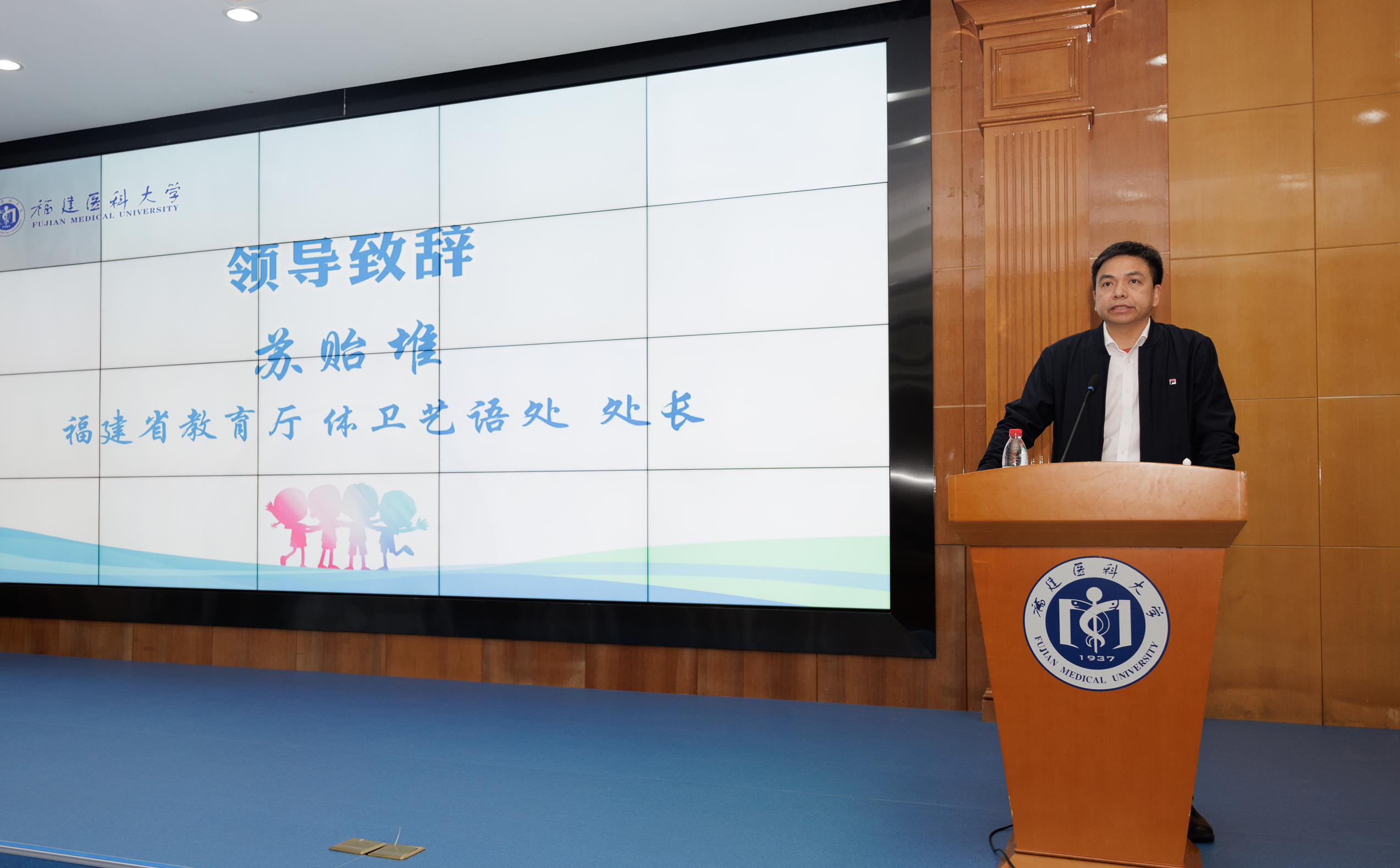 图:福建省教育厅体卫艺语处处长苏贻堆致辞