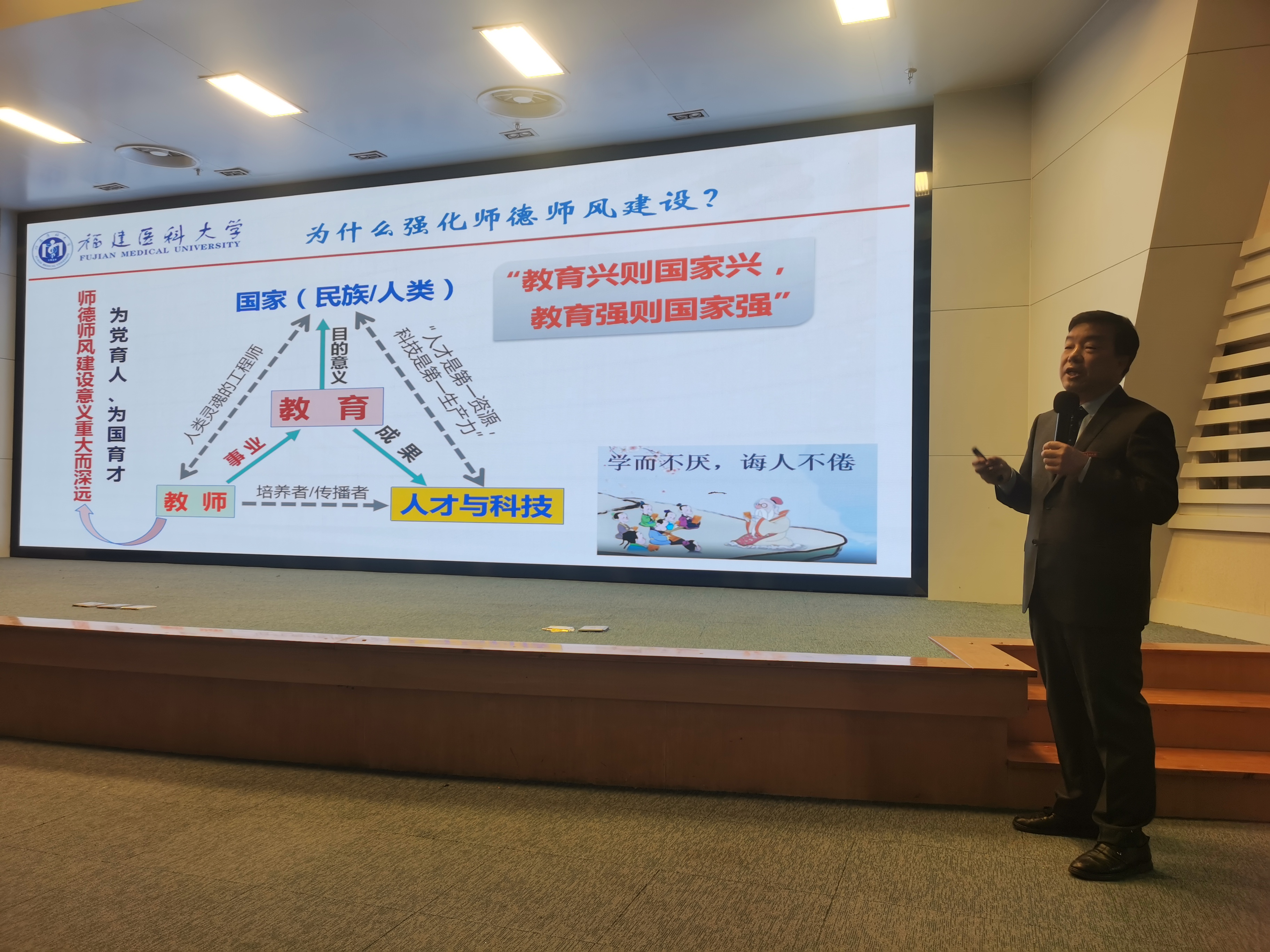 为加强师德师风建设,打造德才兼备的高素质队伍,营造风清气正的育人环境,1月12日上午,我院联合医学影像学院、文理艺术学院在旗山校区图书馆学术报告厅开展师德师风专题讲座,讲座由我院常务副院长(挂职)、宁夏医科大学医学信息与工程学院院长孙玉宁教授主讲,相关学院党委班子成员和教职工参加,讲座由我院党委书记戴乐源主持。