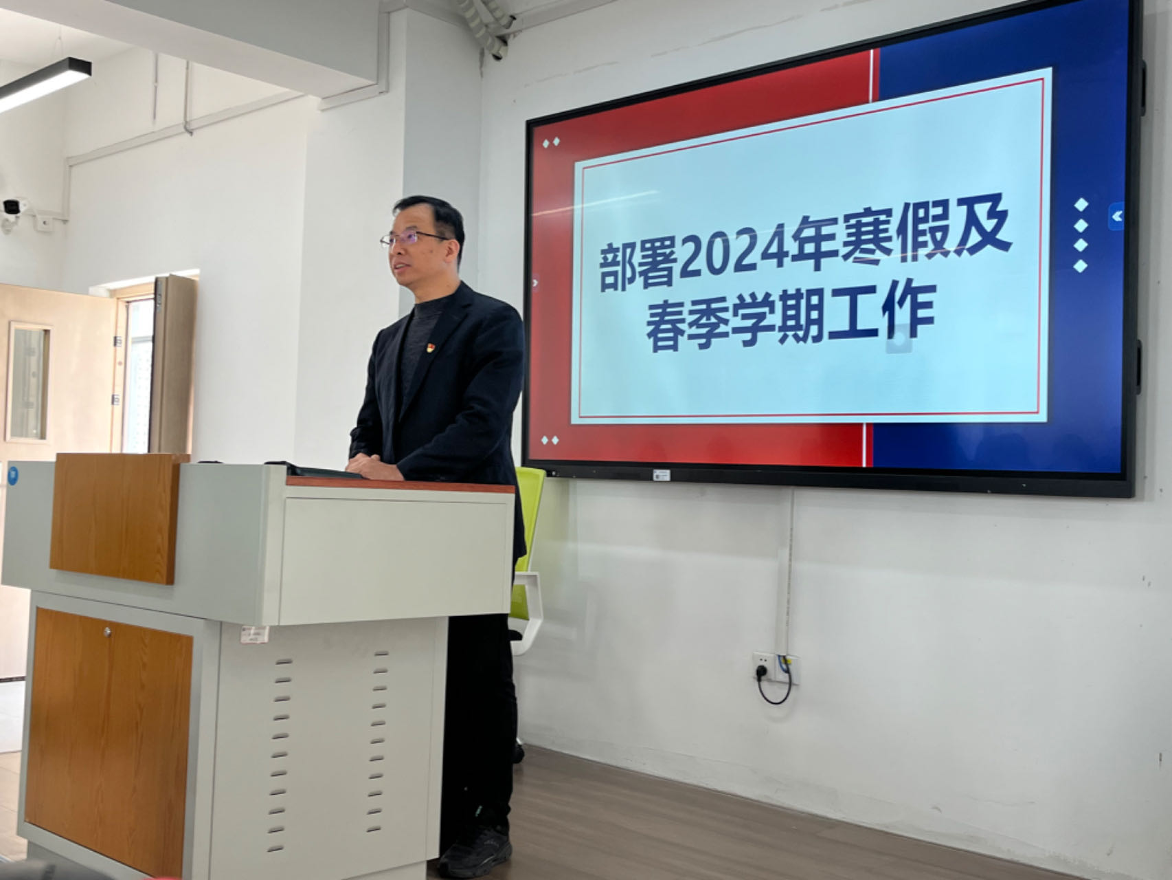专题部署,全员教育。1月18日上午,学院召开全体教职工大会,专题部署2024年寒假和春季学期工作。会上,党委书记戴乐源传达了上级部门对期末和寒假校园安全的重要指示及要求,强调寒假期间要加强值班值守,聚焦实验室安全、消防安全、留校学生管理等重点领域,提醒师生增强交通安全、食品安全、防范诈骗等安全意识。