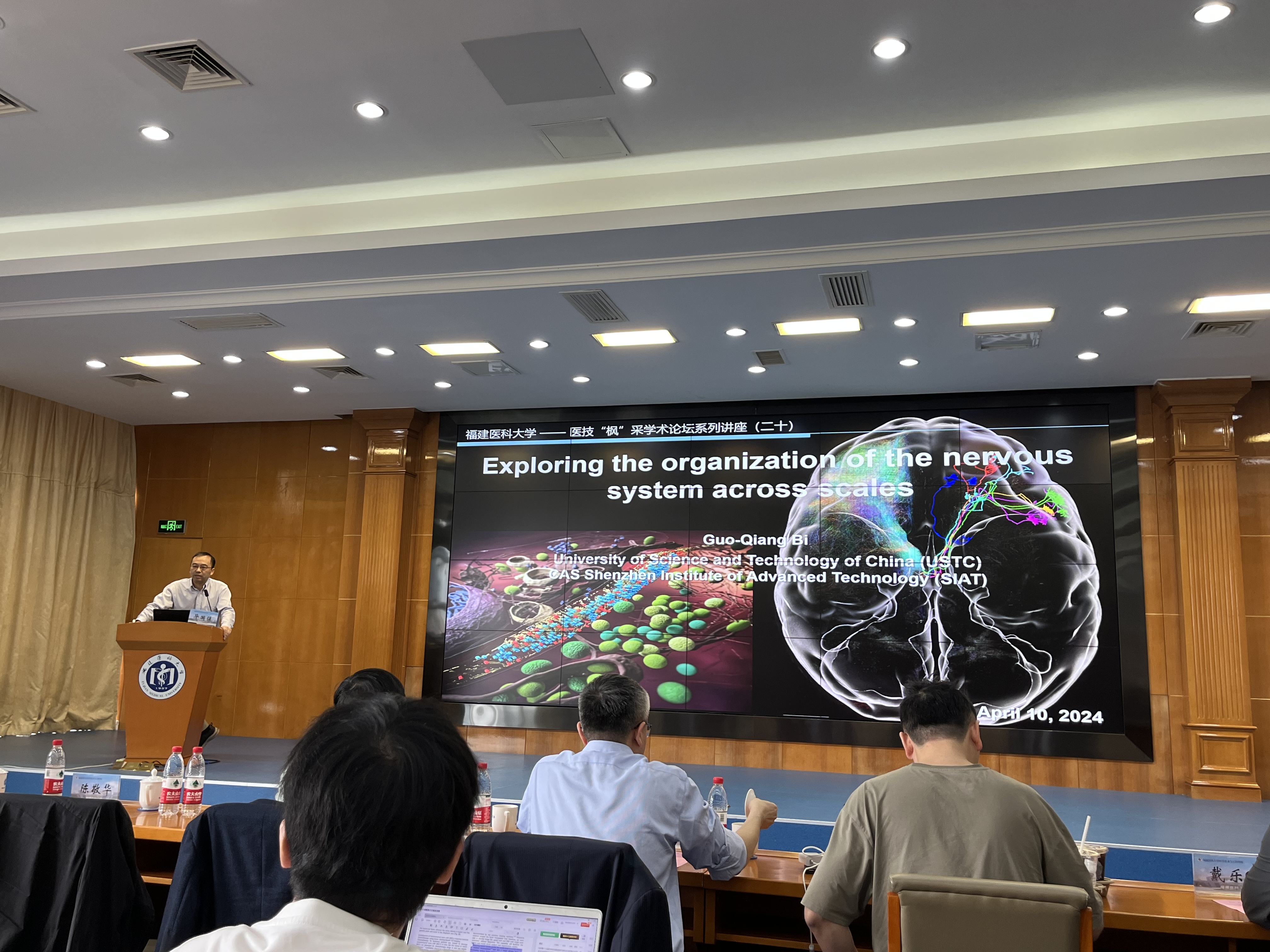 毕国强教授向师生们展示了包括冷冻光电关联成像实现突触超微结构和分子组织构架的精细解析、超高通量同步飞扫三维荧光显微(VISoR)实现猕猴全脑介观图谱的高效绘制、超微型头戴式显微镜实现小鼠四脑区神经元活动的同时记录等新技术,凸显了学科交叉、医工融合在神经系统多尺度复杂结构与功能探索中的重要性。