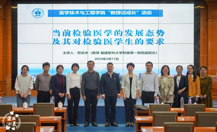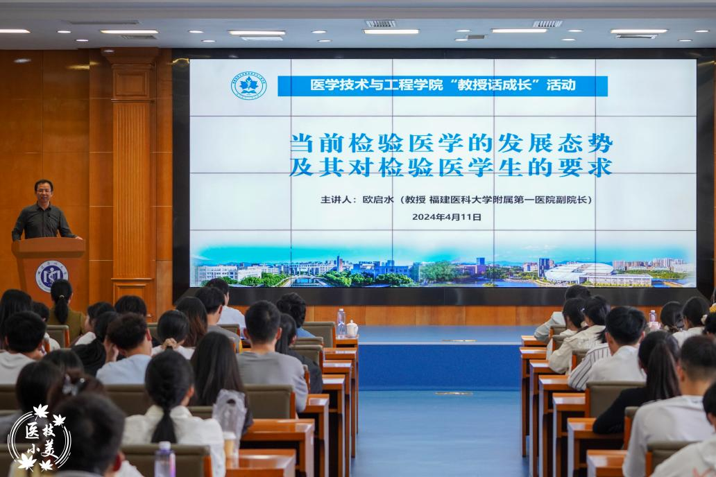 为帮助学生深入了解专业特点,明确发展方向,培养学术思维和研究能力,2024年4月11日下午,我院邀请福建医科大学附属第一医院副院长欧启水教授做客“教授话成长”活动,以《当前检验医学的发展态势及其对检验医学生的要求》为题开展讲座。活动由学院党委书记戴乐源主持。院长林东红,学院党委副书记薛来兴,医学检验学系教师代表,各年级辅导员,医学检验技术专业学生200余人参与本次活动。