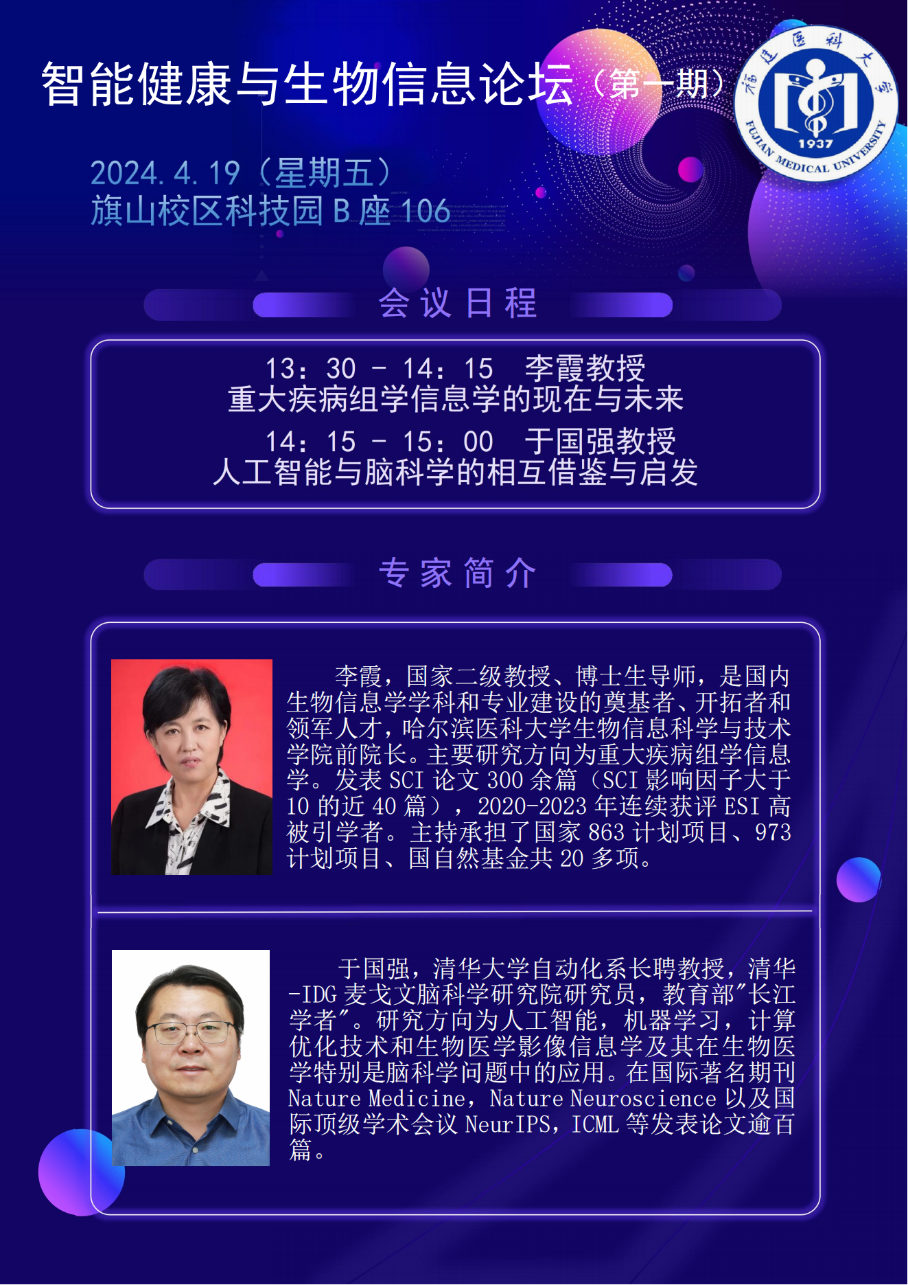 13:30-14:15 | 李霞,教授 | 重大疾病组学信息学的现在与未来 |