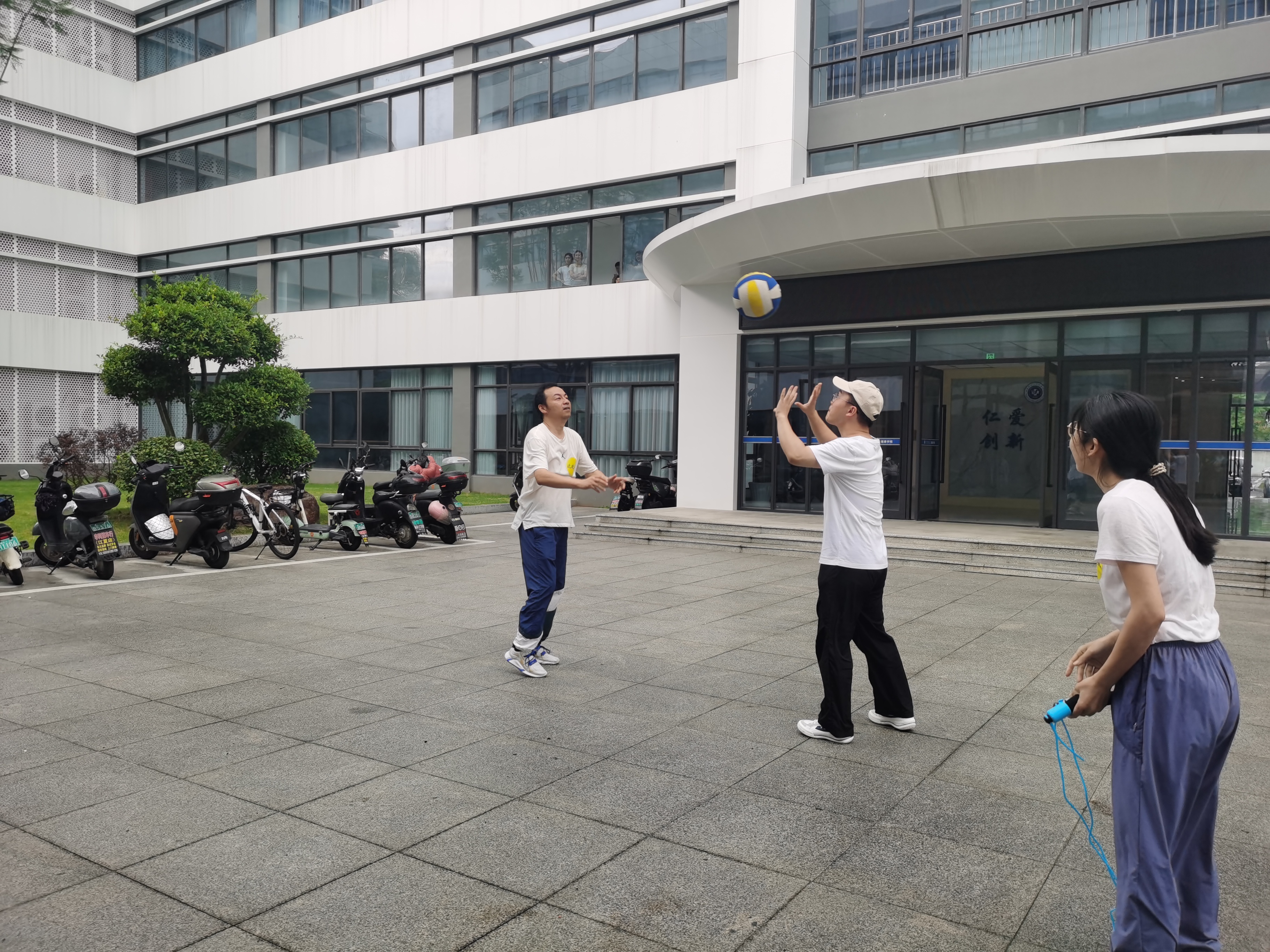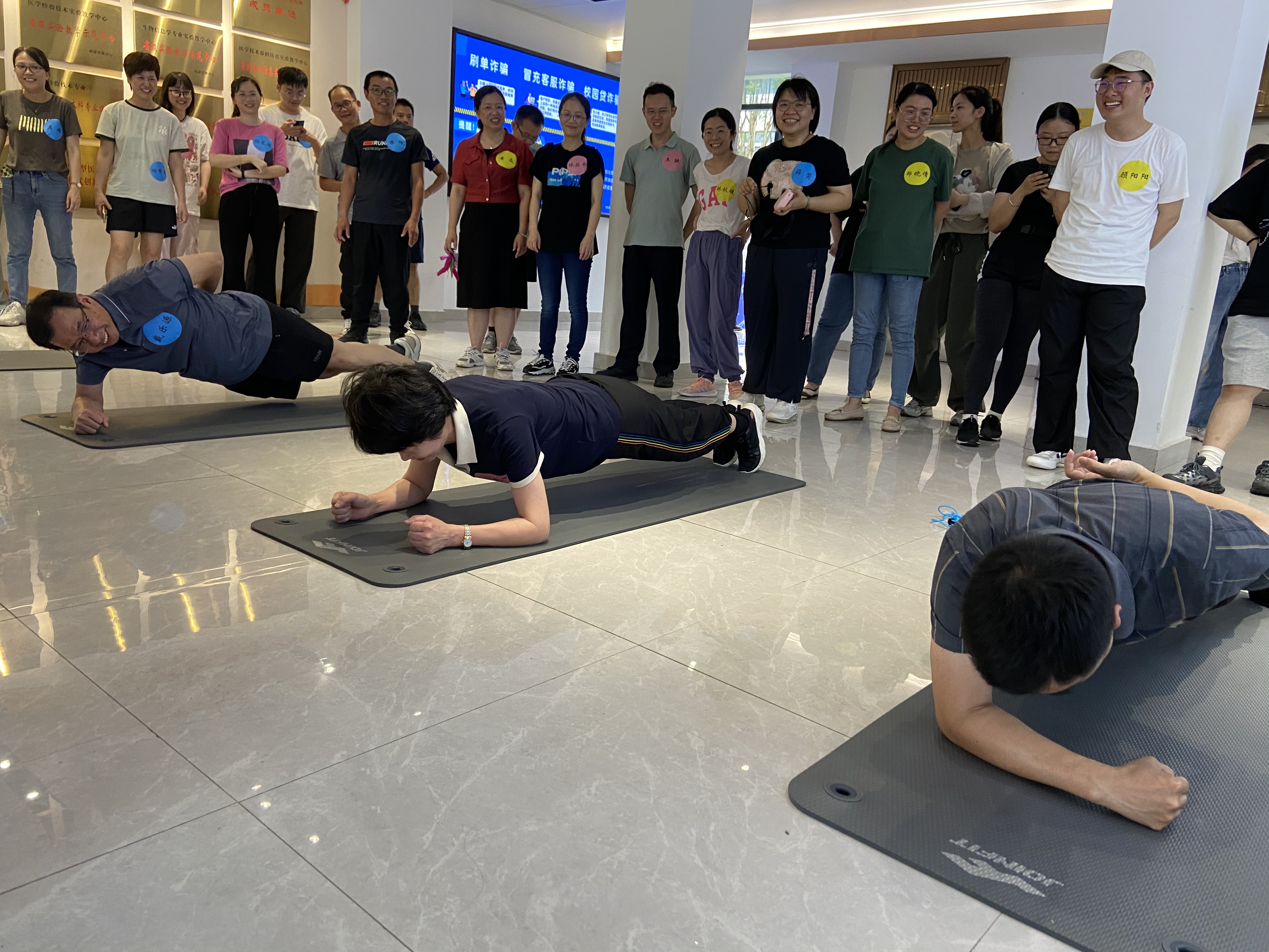 活动设置了环花坛跑、跳绳、垫气排球、踢毽子、仰卧起坐、平板支撑集体跳8字绳、传动作猜成语党纪学习教育知识竞答等9集娱乐性、互动性、协作性、竞争性于一体团体竞赛项目。比赛现场每位教职工都热情高涨气氛热烈,妙趣横生大家尽情享受着比赛带来的快乐,笑声、欢呼声、加油声此起彼伏,展现了职工们凝心聚力、踔厉奋发的精气神。