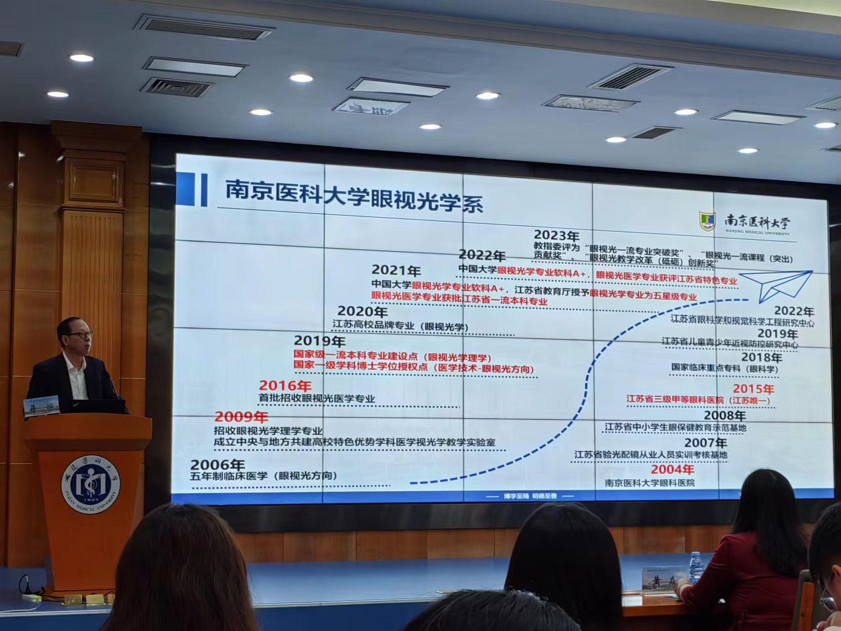蒋沁教授详细介绍了南京医科大学眼视光专业的课程体系建设、教学方法评估、实践教学建设、创新创业能力培养、社会能力培养等方面工作经验,重点介绍了眼视光学学科发展的前景,提升了同学们的专业认知度和职业荣誉感。