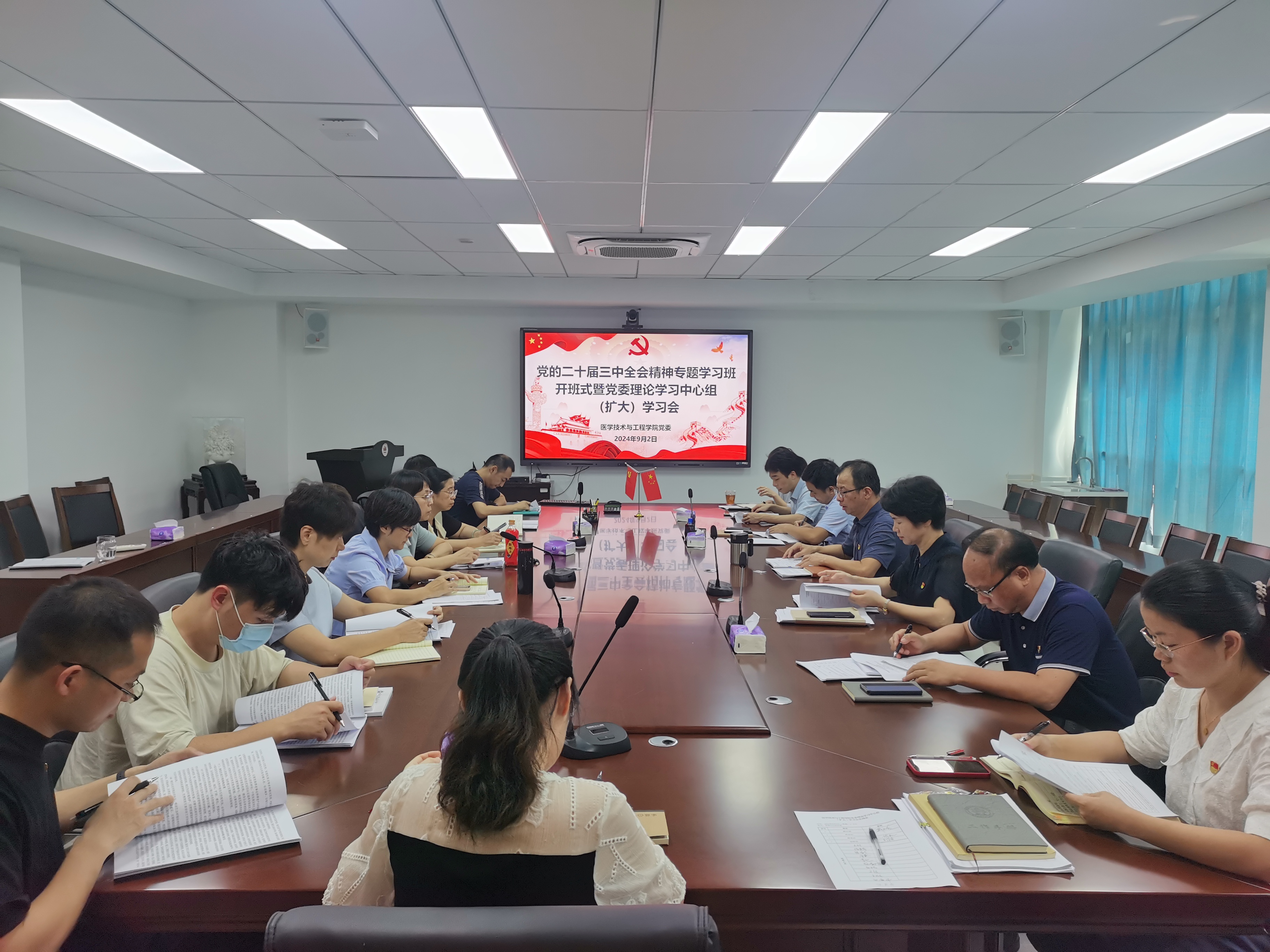 为深入学习宣传贯彻党的二十届三中全会精神,学院决定举办党的二十届三中全会精神专题学习班。2024年9月2日,学院举办专题学习班开班式暨党委理论学习中心组(扩大)学习会,会议由学院党委书记戴乐源主持,全体党委理论学习中心组成员、各党支部书记、学院各部门、学系负责人参加。