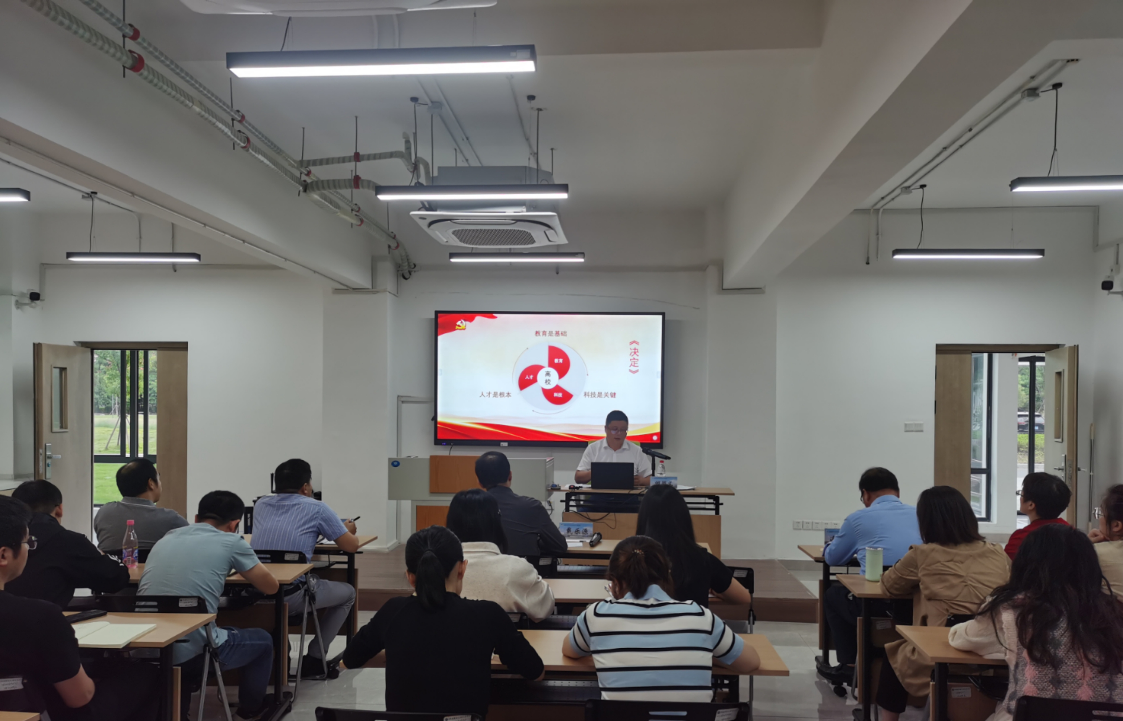 何颖义处长以《深化人才体制机制改革激发师资队伍创新活力》为主题,从党的二十届三中全会召开的重要意义、深入学习领会习近平总书记重要讲话精神、全面准确理解《决定》提出的重大举措和贯彻落实全会精神等四个方面,结合学校人才工作实际,对党的二十届三中全会精神作了系统、生动的阐释和宣讲。整场报告主题鲜明、内容丰富,对我们更好地理解和把握党的二十届三中全会精神、抓好学习宣传贯彻具有重要指导作用。