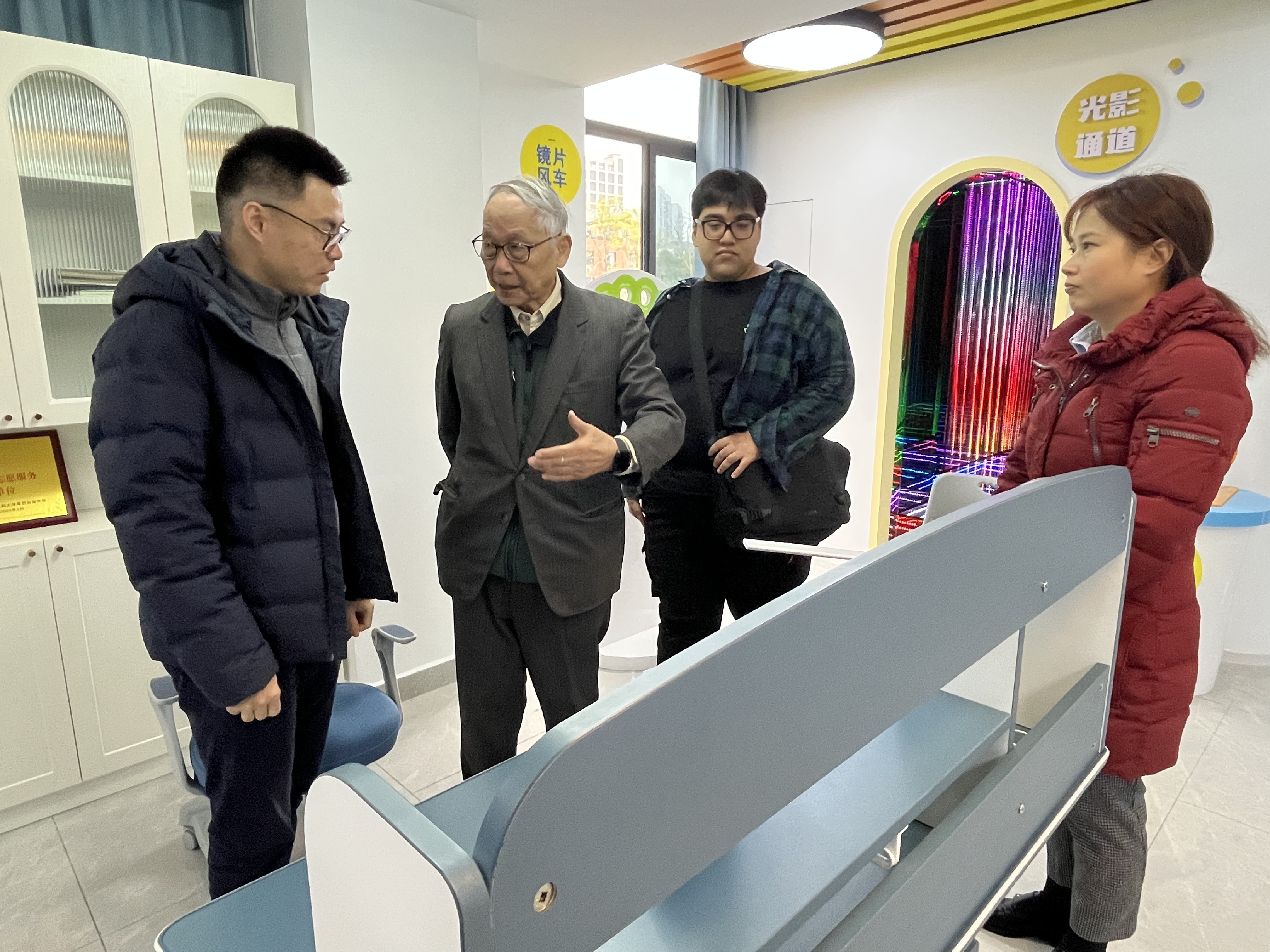 随后,胡教授一行实地参观了眼视光学实验室与福建省儿童青少年近视防控研究中心科普馆,全面了解学院在人才培养、科学研究和社会服务等方面的实践经验。胡教授对学院“教学-科研-社会服务”三位一体的发展模式给予高度评价,认为其在学科建设与社会服务方面具有显著的示范意义,表示将在眼视光学科的人才培养、科学研究、成果转化等方面加强合作,共促眼视光事业的发展。