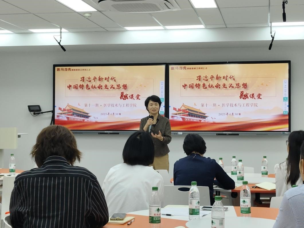 2025年4月30日,医学技术与工程学院在科技园B座108智慧教室顺利承办我校“习近平新时代中国特色社会主义思想融课堂”暨“医马当先”课程思政工作坊2.0(第十一期)活动。本期工作坊特邀校课程思政导师团刘晓如、庄嘉元、林明惠三位教师担任主讲,我院院长林东红、各学系主任、各课程负责人及骨干教师近30人参与了工作坊培训与交流活动。