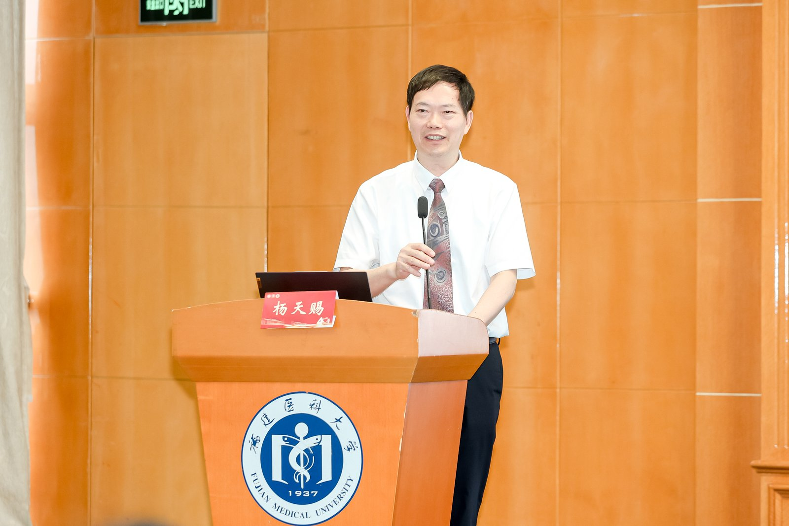校友会医学检验专业委员会主任曹颖平代表校友致辞,向医学检验系办学四十华诞致以热烈祝贺。他感慨道,医学检验从手工操作到智能化、数字化的跨越,凝聚着一代代福医检验人的智慧与汗水,未来将继续凝聚校友力量,为学科发展注入新动能。