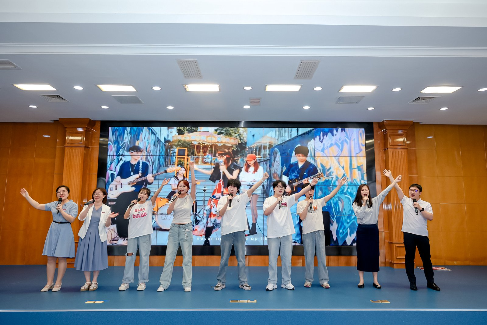 开幕式尾声,福建省各地校友代表以诗朗诵的形式,声情并茂地重温了医学检验四十载风雨历程和对医学检验未来发展的展望。医学检验系师生代表以清澈嘹亮的歌声唱响《少年》,将现场不忘初心的奋进氛围推向高潮。