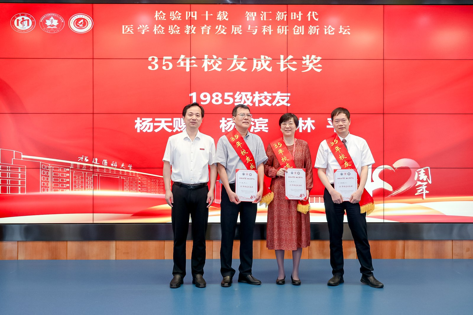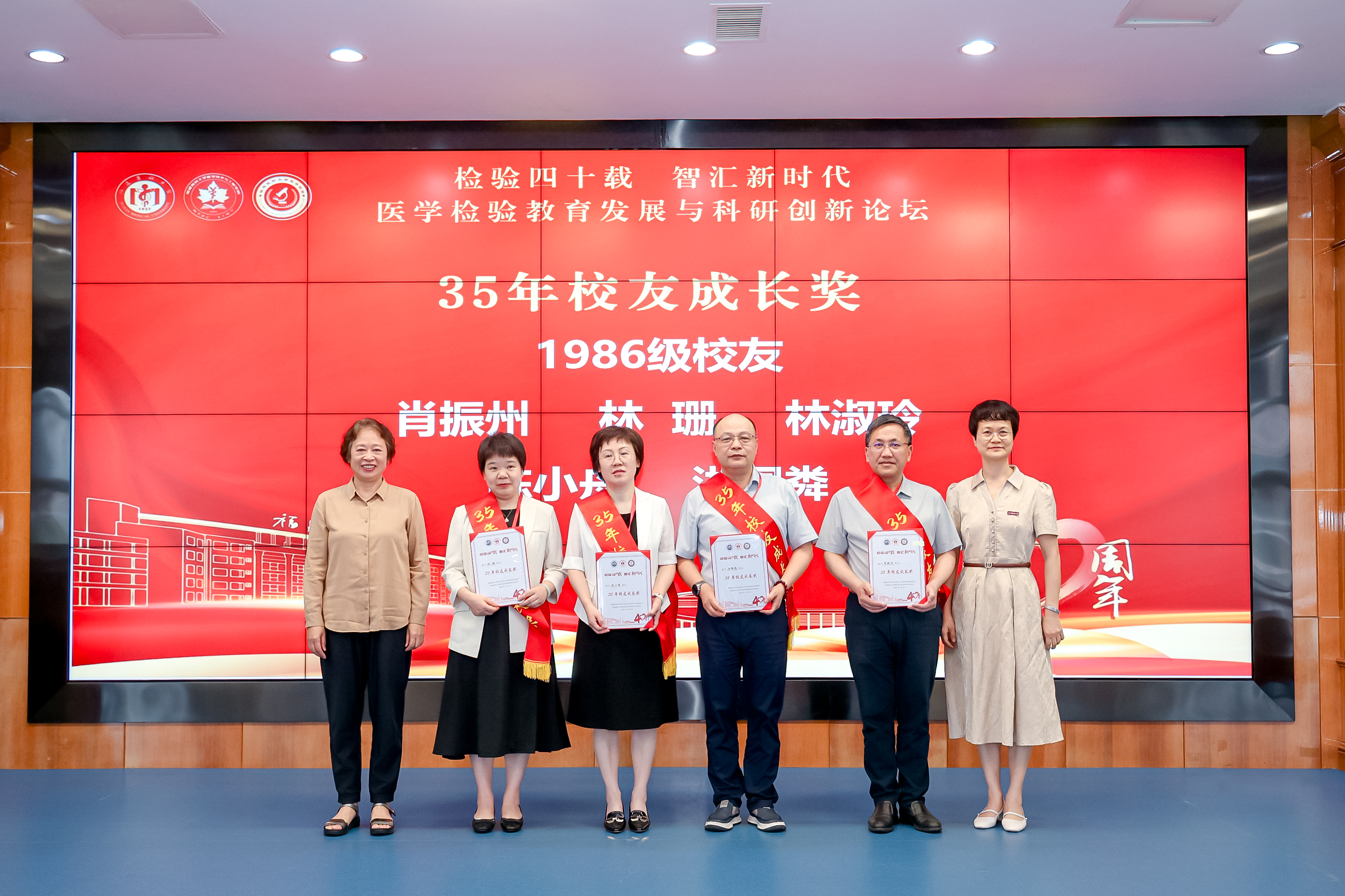四十载春华秋实,四十载无私奉献。医学检验系今天的成就,离不开历届校友的关心与支持表彰校友们的卓越贡献和深厚情谊,活动现场学校、学院领导及医学检验系老一辈教师代表为1985级、1986级校友颁“35年校友成长奖”,历届校友联络人颁发“校友贡献奖”。