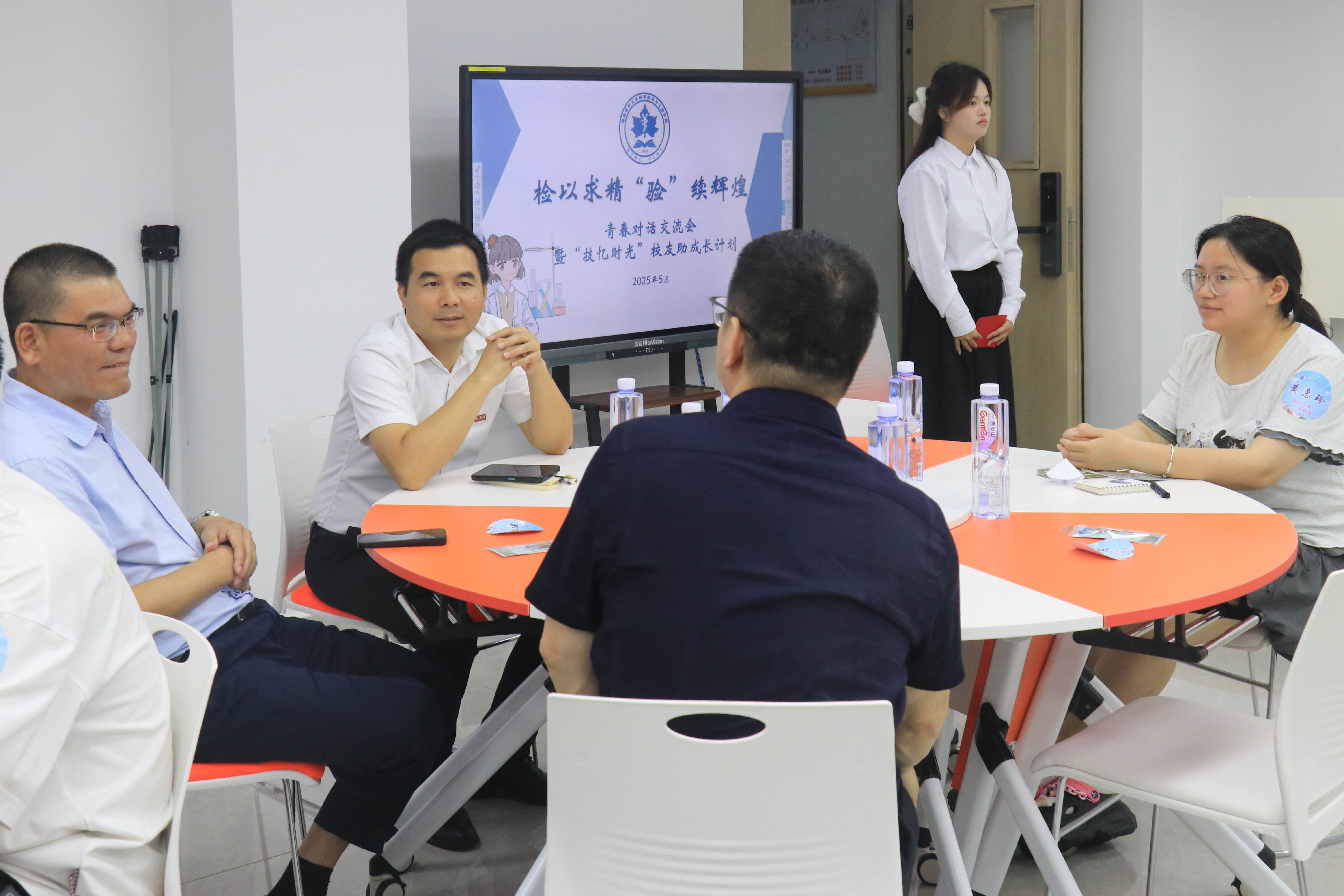 代际对话,启迪未来。学生座谈会在福建医科大学科技园B座108室举行。学院党委副书记薛来兴、校友代表福建省肿瘤医院检验科苏光建副主任、福建美捷尔医疗科技股份有限公司总经理郑建标、全体辅导员老师与学生代表展开面对面交流。校友代表以自身成长经历为引,勉励学生珍惜大学生活,努力锤炼过硬本领,立足学科前沿,坚定专业自信,不断提升就业竞争力。